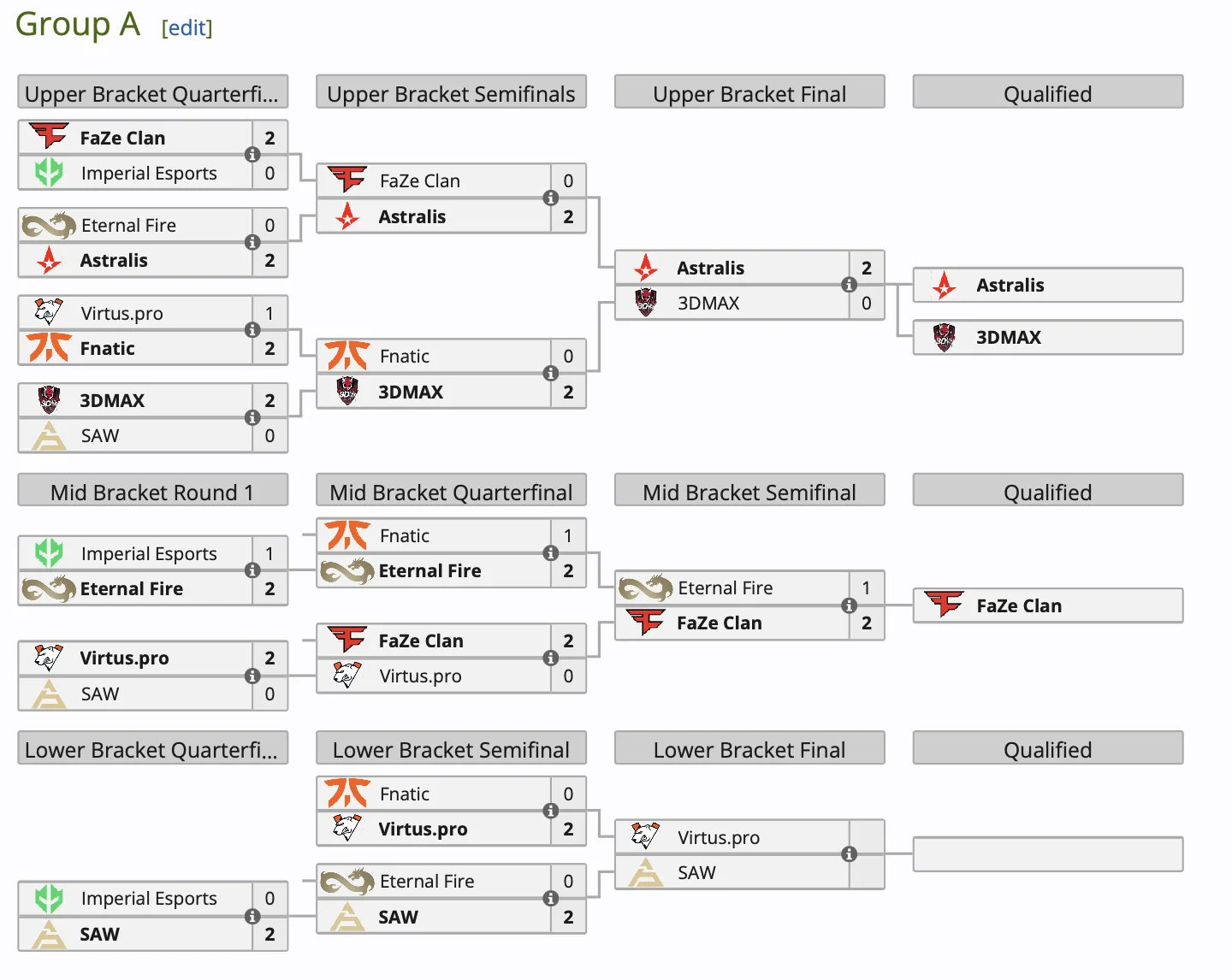 Astralis победила 3DMAX в группе “А” и сразу попала в четвертьфинал плей-офф, в то время как остальные команды начнут борьбу со второго раунда нокаут-стадии.