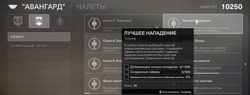 Последнее задание, которое вам нужно выполнить, чтобы завершить лучшее нападение это завершить налеты и сумеречные налеты. Это займет больше всего времени, так как каждый нанесенный вами удар будет считаться 1%. Сумеречные налеты также будут считаться 5% к вашей общей цели. Это означает, что теоретически вам нужно будет выполнить 100 ударов, однако забеги в некоторых налетах приводят к более быстрому подъему планки в долгосрочной перспективе. Самый простой способ завершить эту часть триумфа, просто просмотреть доступные плейлисты. Хорошая новость заключается в том, что у вас также будет возможность приобрести какое-то другое снаряжение, которое стоит того.