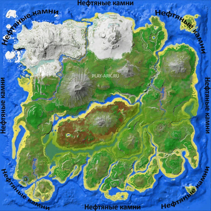 Важно помнить: то, что какого-либо ресурса больше всего в одном биоме ARK, не отменяет его наличия в другом. Поэтому можно найти дерево можно и на пляже или среди вечной мерзлоты, а отыскать нефть между лавовыми реками.