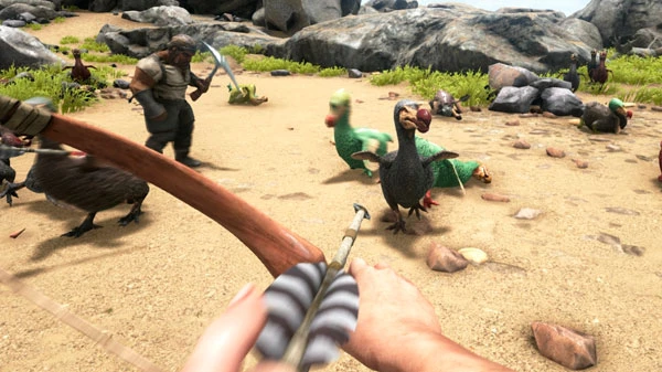 Лук – совершенно необходимый предмет для игры. Неприхотлив, прост, смертоносен. Чем он лучше – тем выше вероятность завалить любое существо всего лишь несколькими стрелами. Лучшим считается блочный лук – он обеспечивает самый высокий урон и приемлемую точность. ID этого предмета в ARK – 376. Вместе с блочным луком необходимо использовать качественные металлические стрелы (ID 377), способные пробить шкуру любого динозавра.