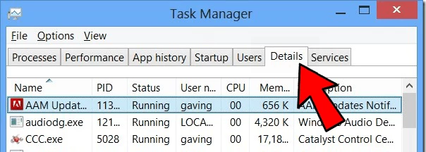 1) Откройте игру> нажмите Ctrl, Shift и Esc, чтобы открыть диспетчер задач > нажмите вкладку Подробности