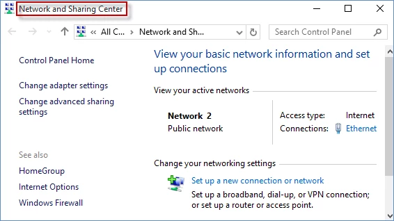 - Нажмите Открыть настройки сети и Интернета > затем в настройках нажмите Центр управления сетями и общим доступом.
