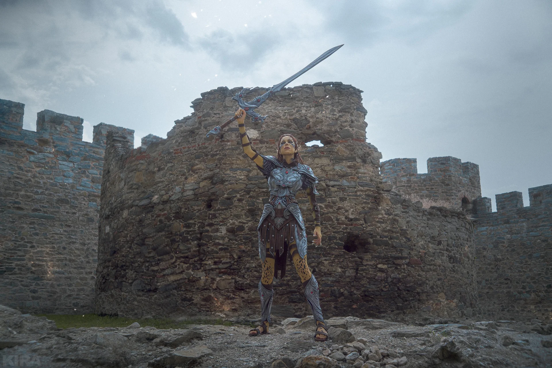 Лаэзель была изображена в стальных латах, что придает ей строгость и силу, характерные для воительницы. Кроме того, косплеер не забыл про длинный меч, который хранится у персонажа всегда под рукой, готового нанести удар в любой момент.