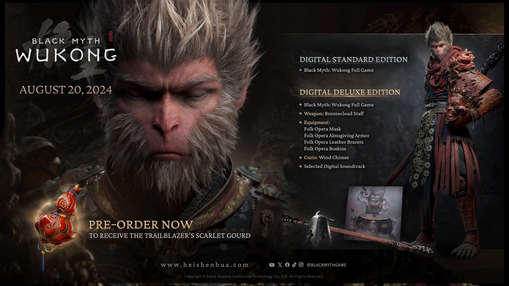 Делюксовое издание включает в себя: игра Black Myth: Wukong, посох бронзовых облаков, традиционная оперная маска, доспехи щедрости, браслеты, котурны, серьги с колокольчиками и цифровую музыку.