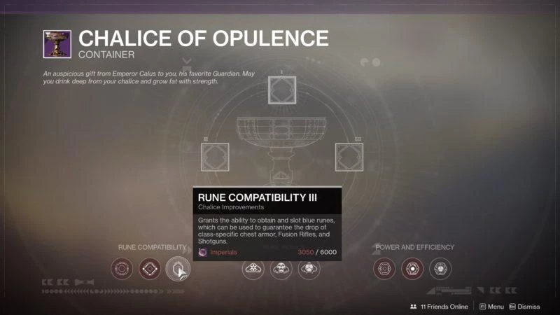Путь к получению синих рун в Destiny 2 происходит через Чашу изобилия. Игрокам нужно будет сосредоточиться на улучшениях в нижней части кубка после его открытия, а именно на разделе, посвященном совместимости бега. Чтобы получить Синие Руны в Destiny 2, игрокам нужно будет разблокировать Совместимость Рун 3, последнее обновление в этом разделе. Это обновление обойдется игрокам в 6000 империалов, и у них должны быть разблокированы как Совместимость Рун 1, так и Совместимость Рун 2.