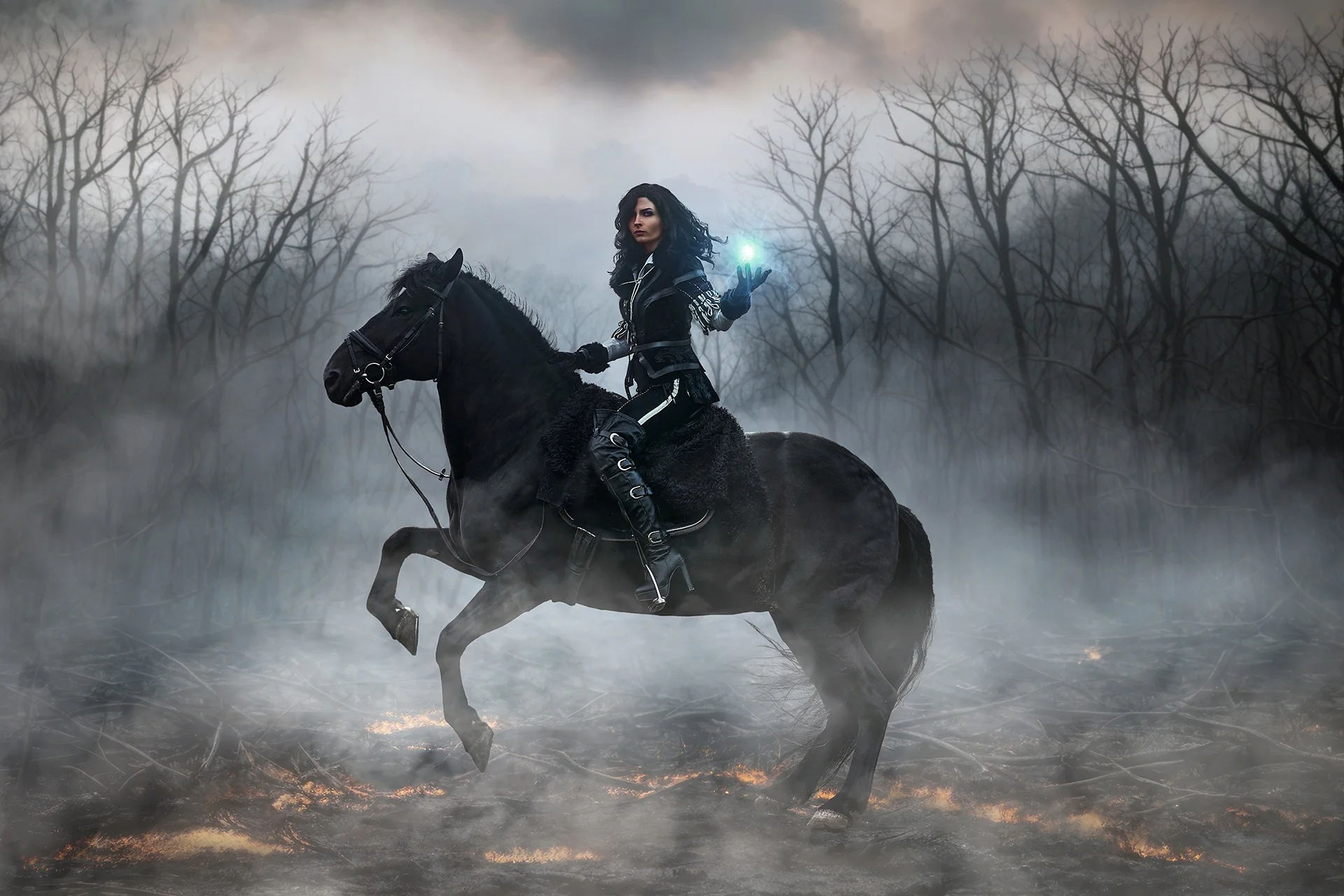 На снимках она изображена как черноволосая чародейка из Венгерберга, находящаяся верхом на лошади по имени Матрешка. Князева представила классический образ героини книг Анджея Сапковского. Образ был запечатлен фотографом Дмитрием Мичелевым.