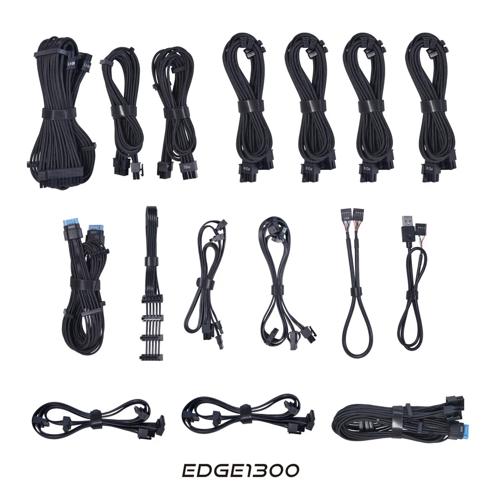 В блоках питания использованы промышленные конденсаторы EPCOS, которые обеспечивают надежную и стабильную работу. Серия EDGE также поставляется с двухцветными разъемами 12VHPWR и кабелями питания SATA. Они соответствуют стандартам PCIe 5.1 и ATX12V Version 3.1 и обладают рейтингом 80 Plus Platinum, Cybenetics Platinum и PPLP Platinum. Блоки питания доступны в черном и белом цветах, с моделями мощностью 1300 Вт, 1000 Вт и 850 Вт.