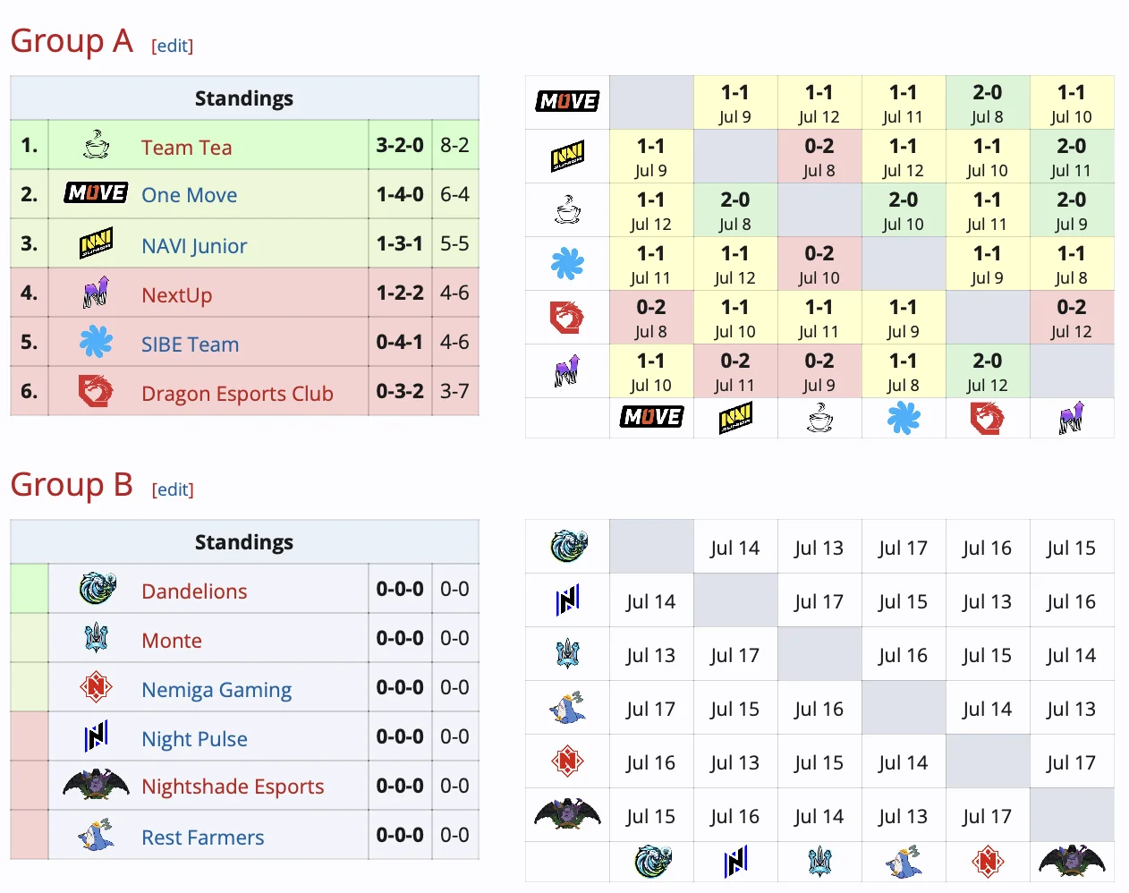 Прямиком в полуфинал вышла команда Team Tea. В следующем раунде встретятся One Move и NAVI Junior. Из турнира выбыли NextUp, SIBE Team и Dragon Esports Club.