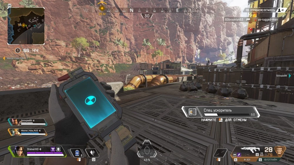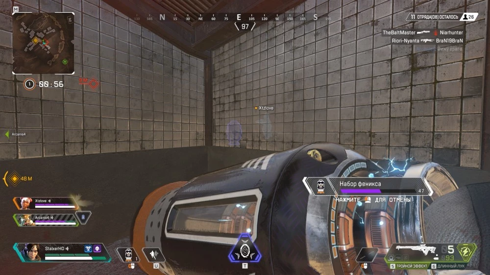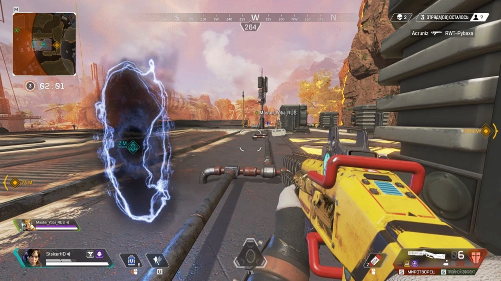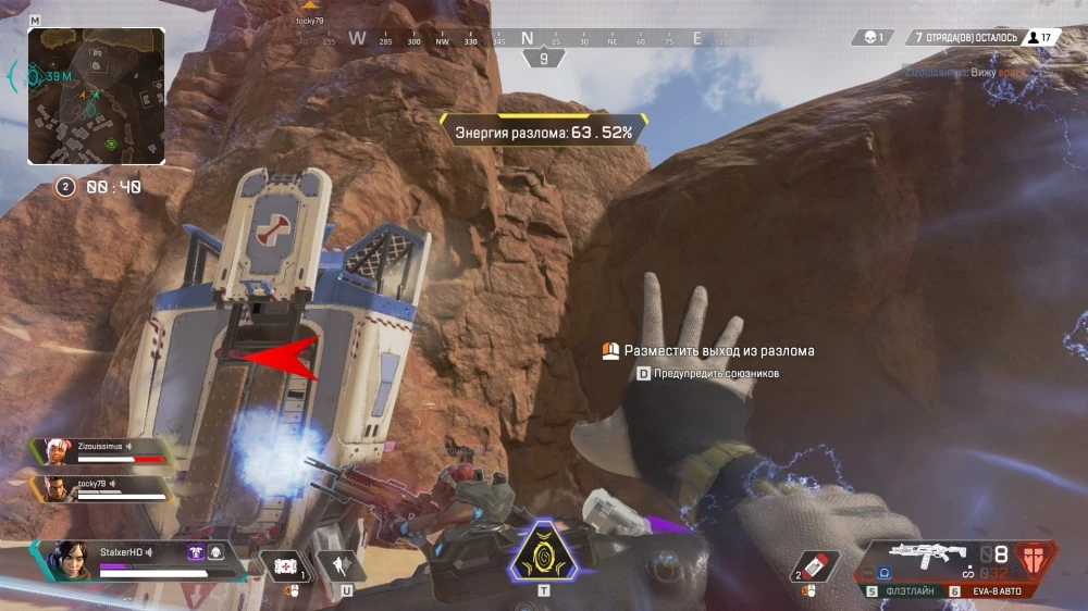 Дальше можно действовать по ситуации — спрятаться за укрытием или активировать одну из двух других способностей. Если враги достаточно близко, то используйте «разлом»: это одна из самых скоростных способностей в игре, а применив её, вы сможете за пару секунд добраться до позиций противника всей командой.