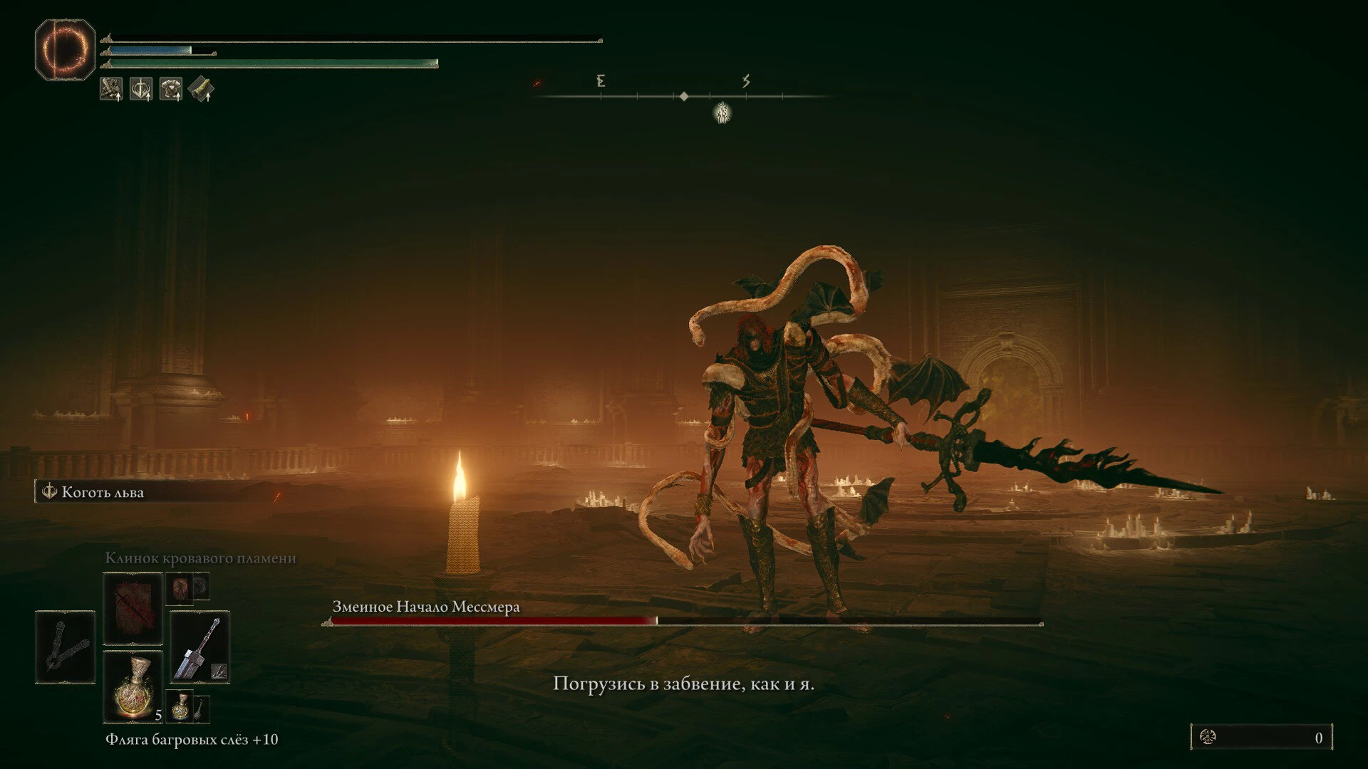 Постарайтесь оставаться поближе к Мессмеру. Он преимущественно атакует своим копьем, держа его в левой руке, и часто промахивается, если игрок находится справа и близко. Порой он не поджигает копье, и его комбо становится значительно легче для блокировки и парирования.