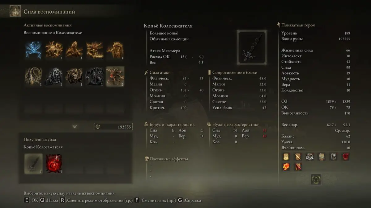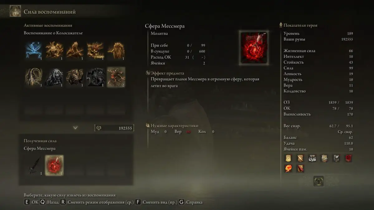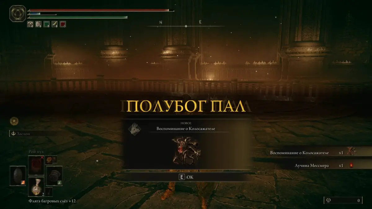 - Воспоминание о Колосажателе: предоставляет возможность использовать Копье Колосажателя и молитву Сфера Мессмера в Чтице Пальцев в хабе.