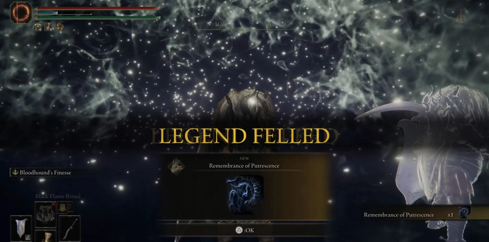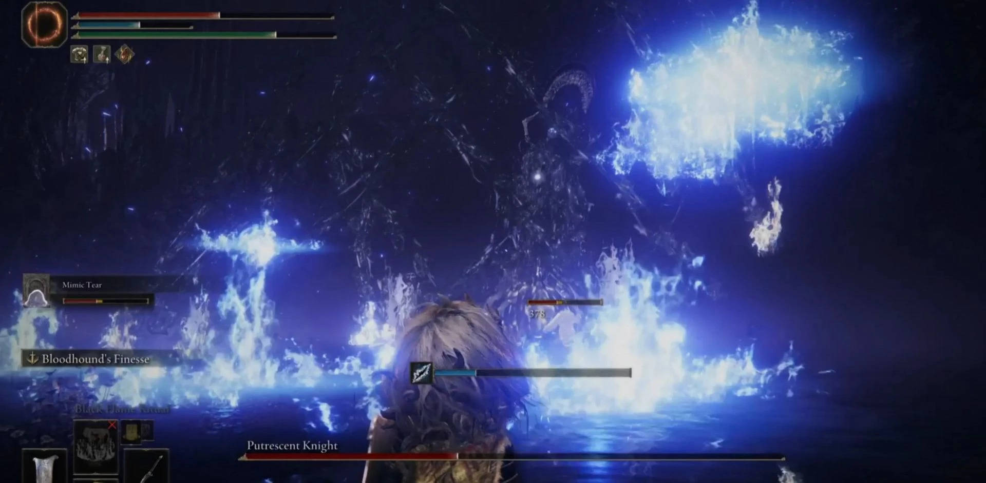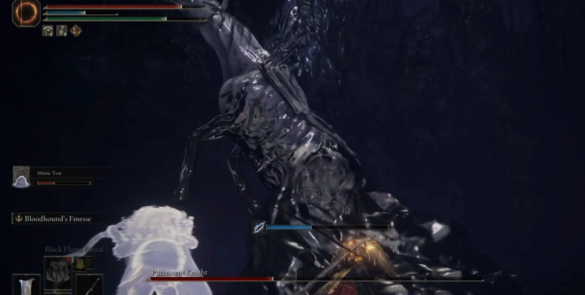 Гниющий рыцарь также уязвим к кровотечению и может быть оглушен. Если удастся нанести больше ударов, особенно с использованием призывного праха, этого сложного противника можно одолеть весьма быстро.