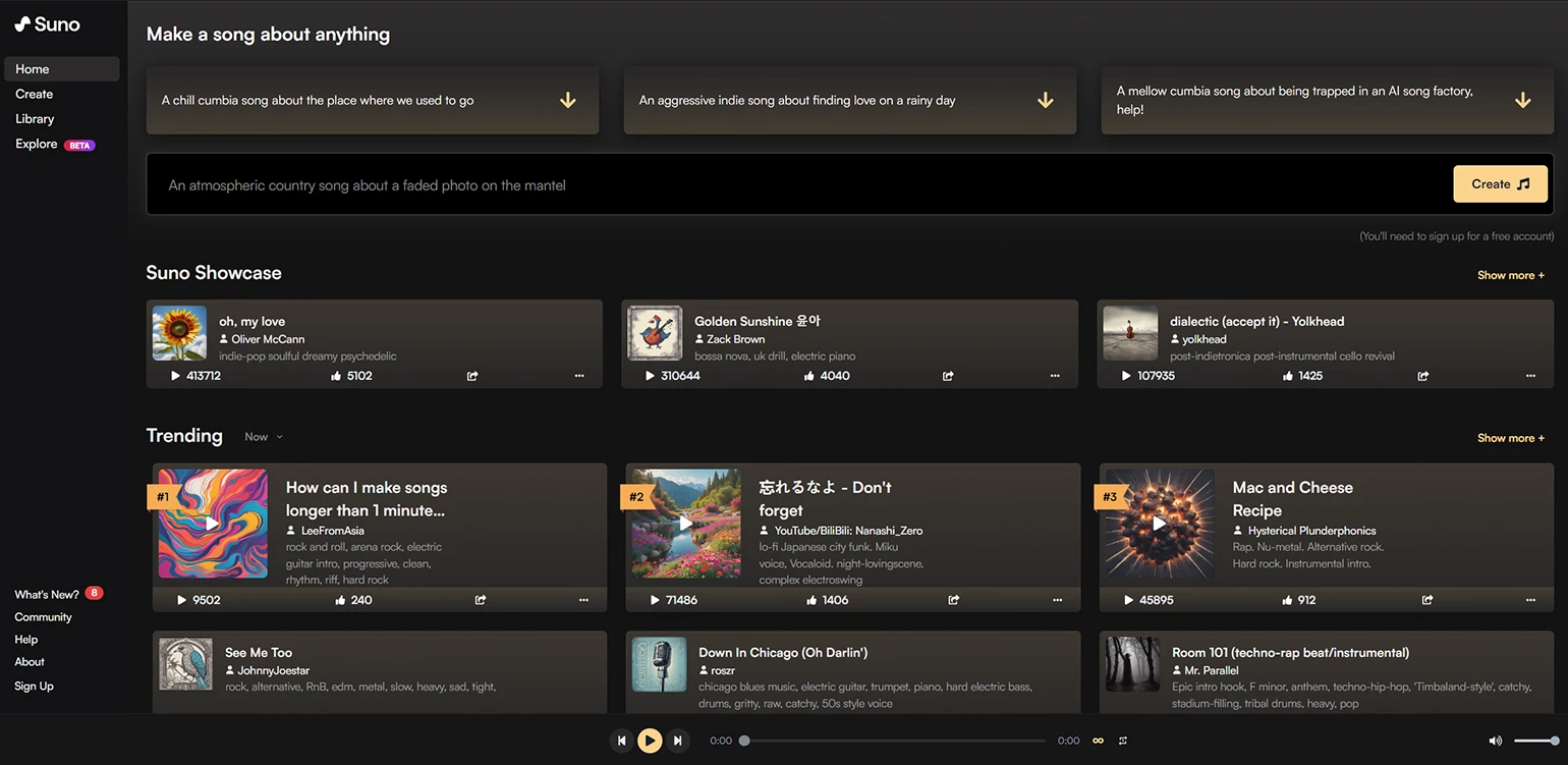 Suno также предоставляет возможность адаптивного создания музыки, позволяя пользователям комбинировать элементы различных жанров и стилей. Это дает возможность создавать уникальные гибридные композиции, такие как рок-версии поп-песен или сочетания джаза с электронными битами. Suno упрощает процесс создания музыки, превращая ваши идеи в качественные треки.