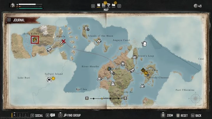Затопленная золотая шахта находится в юго-западном углу карты, в заливе, окруженном землей, в районе Зива-Кубва. Доступ к ней возможен через несколько узких рек, что делает это место легко упустить из виду. На карте ниже представлен самый быстрый путь от стартового города Сент-Аннето до затопленной золотой шахты.
