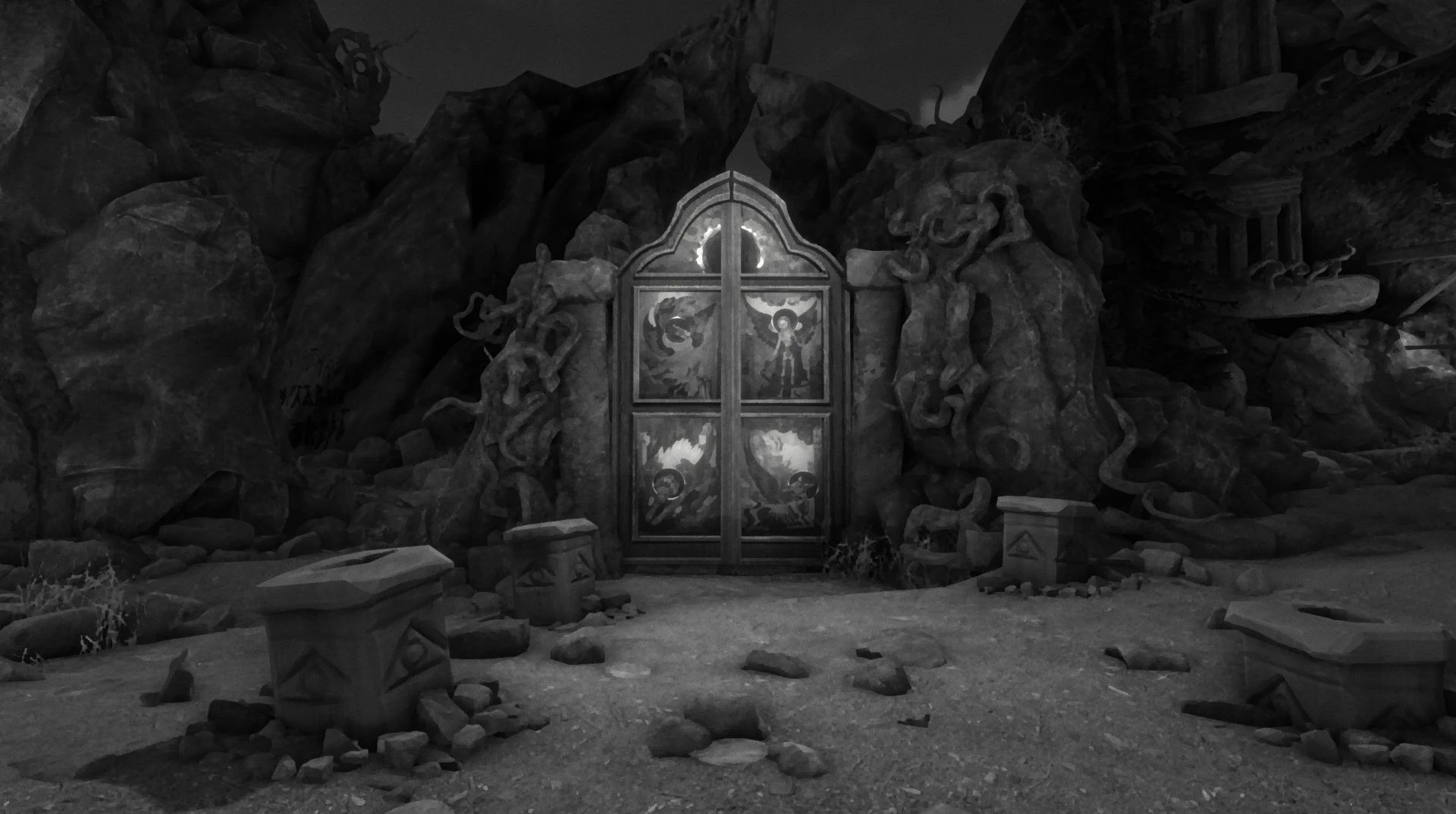На новых изображениях представлены различные игровые локации. Среди них можно увидеть заброшенный храм, полный таинственности и запустения, а также мастерскую, где находятся статуи, вырезанные из дерева. В одном из кадров запечатлён старик, который ведёт разговор с главным героем.