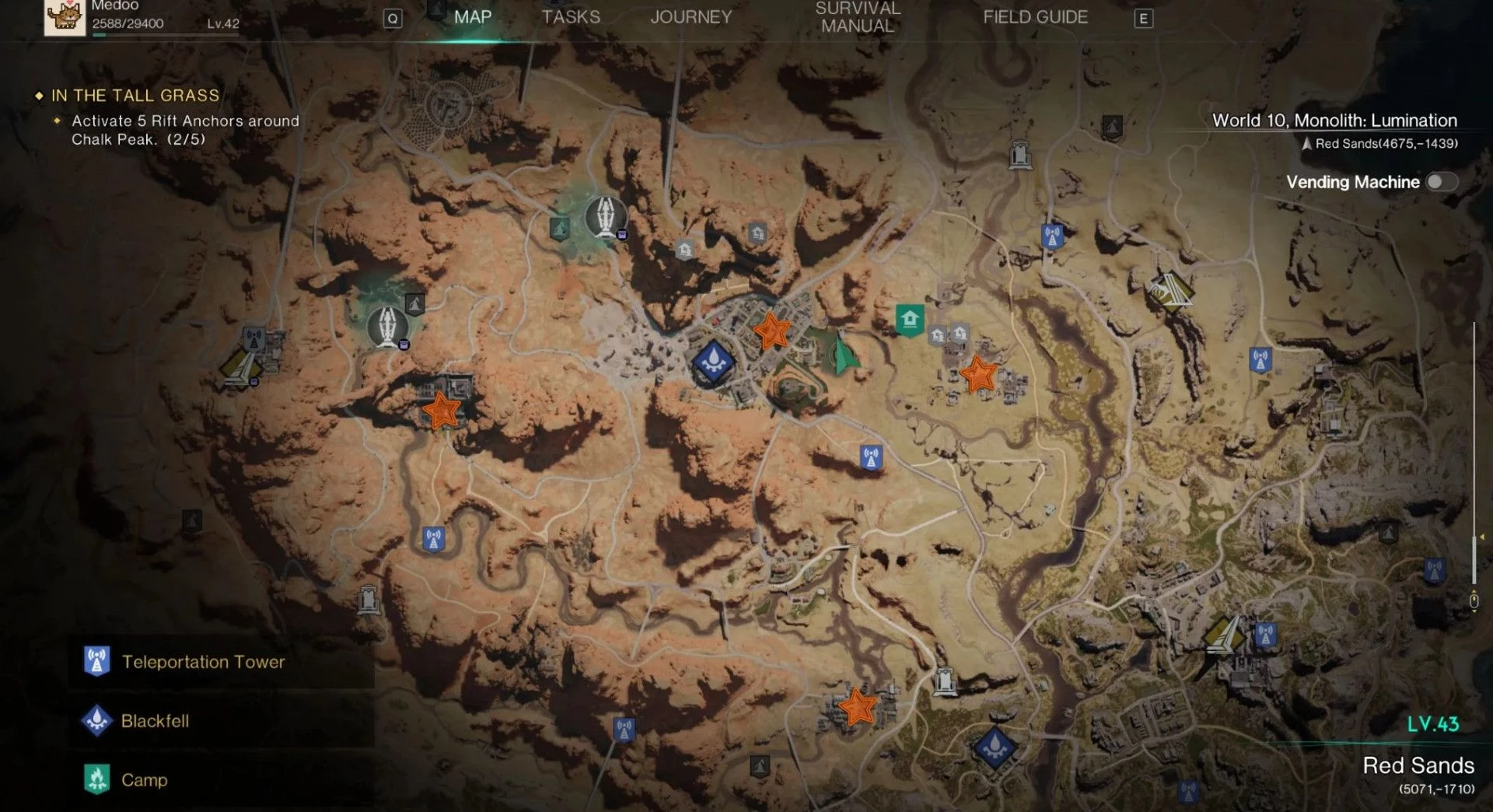 Вам необходимо будет изучить окрестные поселения вокруг центра Блэкфелла для поиска материалов, необходимых для автоматических деталей. Например, вы можете посетить следующие локации: Зона падения Блэкфелла расположена на востоке от поселения. Нефтяные месторождения Блэкфелла находятся на юго-восточном направлении. Эвергрин располагается к югу от поселка. А точка извлечения источника находится на западе от него.