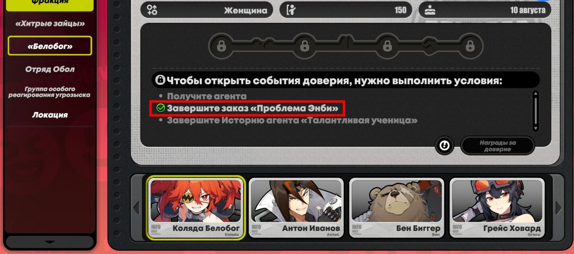 Как проверить уровни доверия агента в Zenless Zone Zero