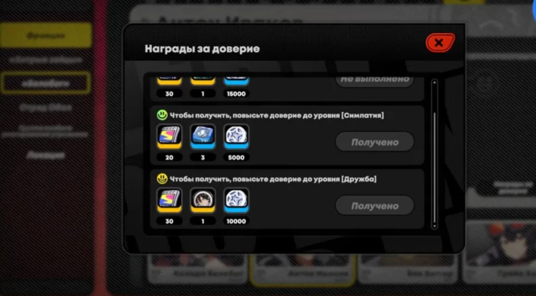 Следующий уровень — Дружба. Здесь вас ждут более ценные награды: 30 полихромов, резонанс соответствия для Нулевой каверны и 10 000 денни. Эта близость укрепит ваши связи и даст возможность глубже понять мрачные тайны мира.