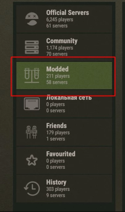 Информация для игроков. Сервера с модами находятся так. Жмём сюда.