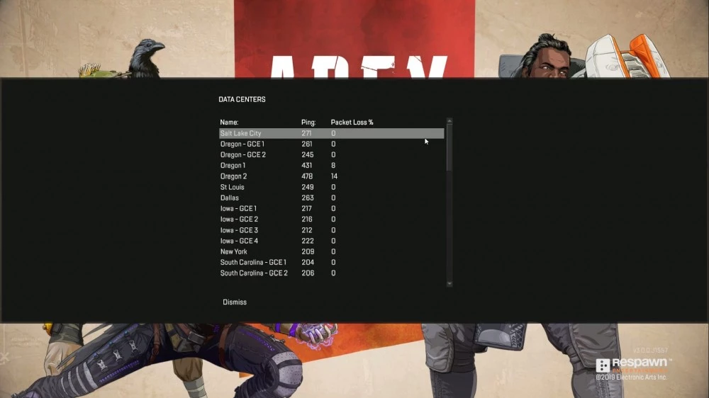 В меню Apex Legends игроки могут выбрать датацентр с меньшим пингом и процентом потери данных. Датацентр — это множество серверов, которые обеспечивают соединение между игрой и игроками. Чем ближе датацентр географически или чем больше его мощность, тем меньше пинг и, соответственно, тем лучше соединение с игрой.