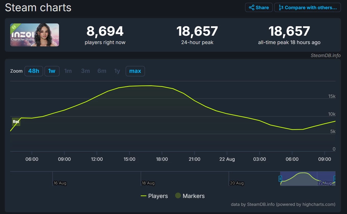 В то же время, максимальное количество пользователей, одновременно использующих редактор персонажей в Steam, почти пересекло отметку в 19 тысяч человек.