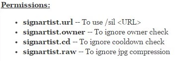 - grant group default signartist.url — дает разрешение группе игроков на использование команды /sil