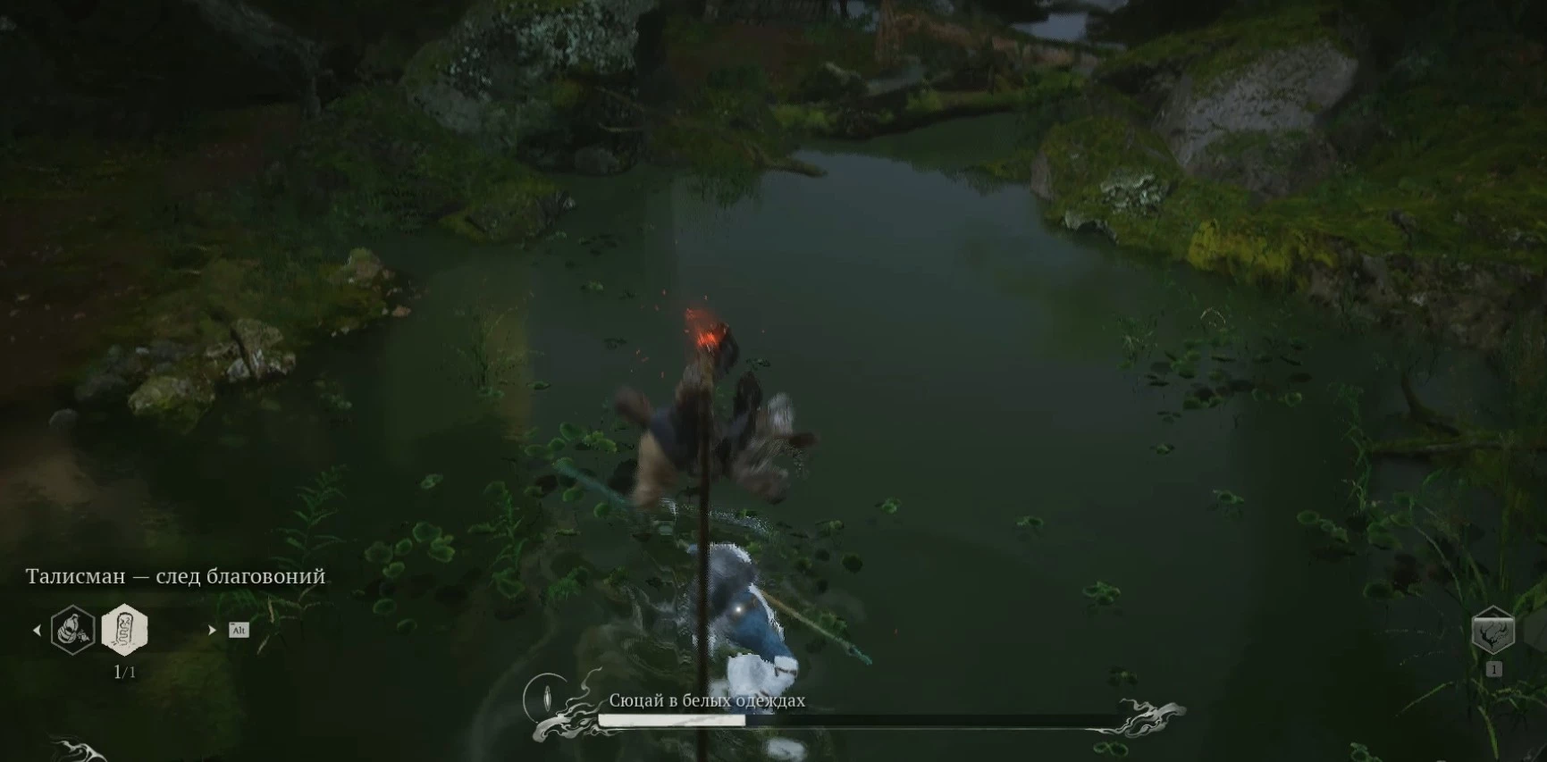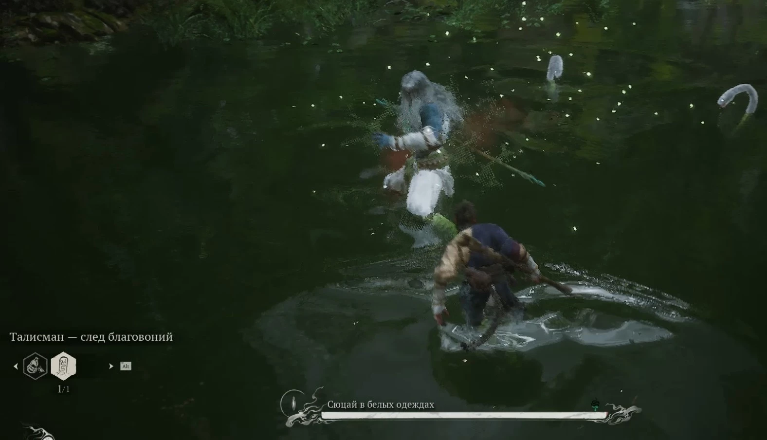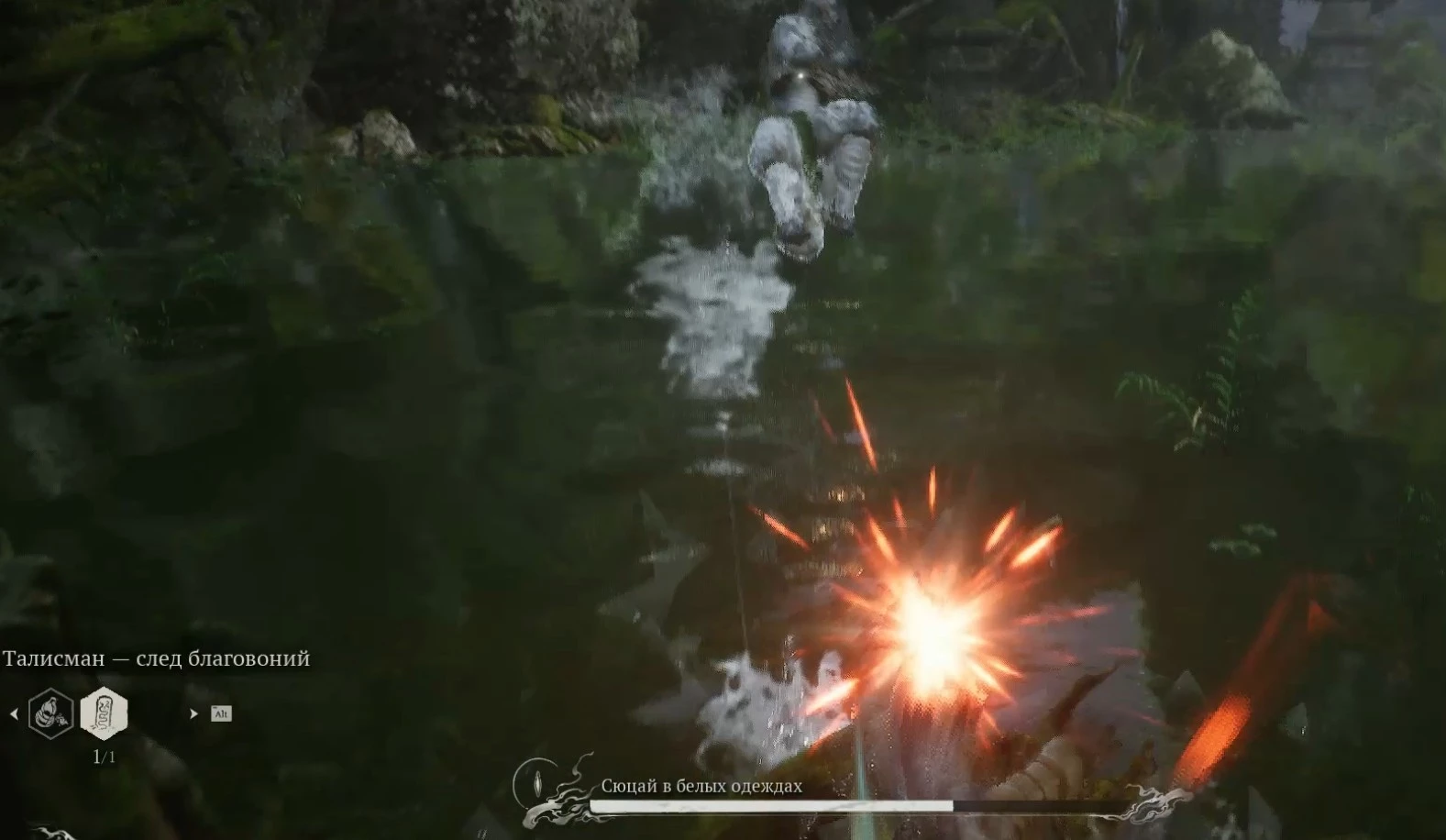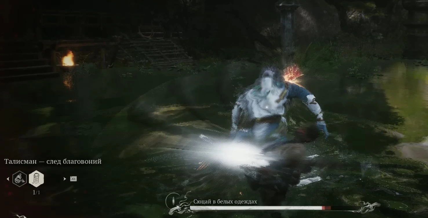 Сюцай в белых одеждах — это первый противник, который использует знакомую механику с разделением боя на фазы. В процессе сражения вам предстоит сталкиваться как с его ближними атаками, так и с дальнобойными способностями.