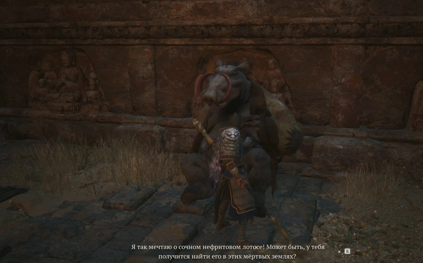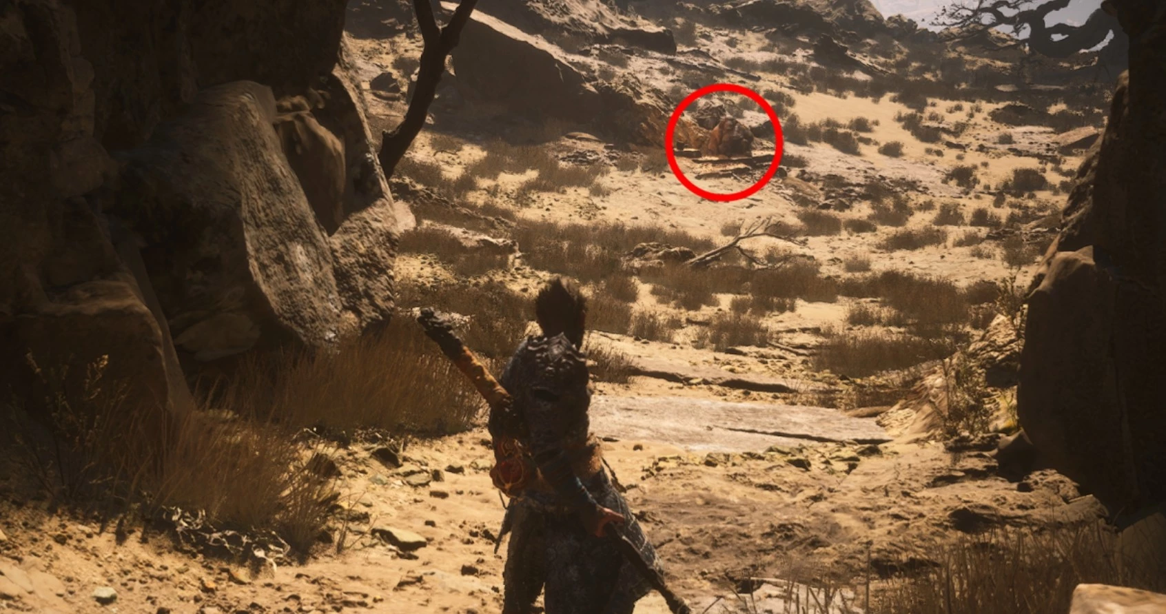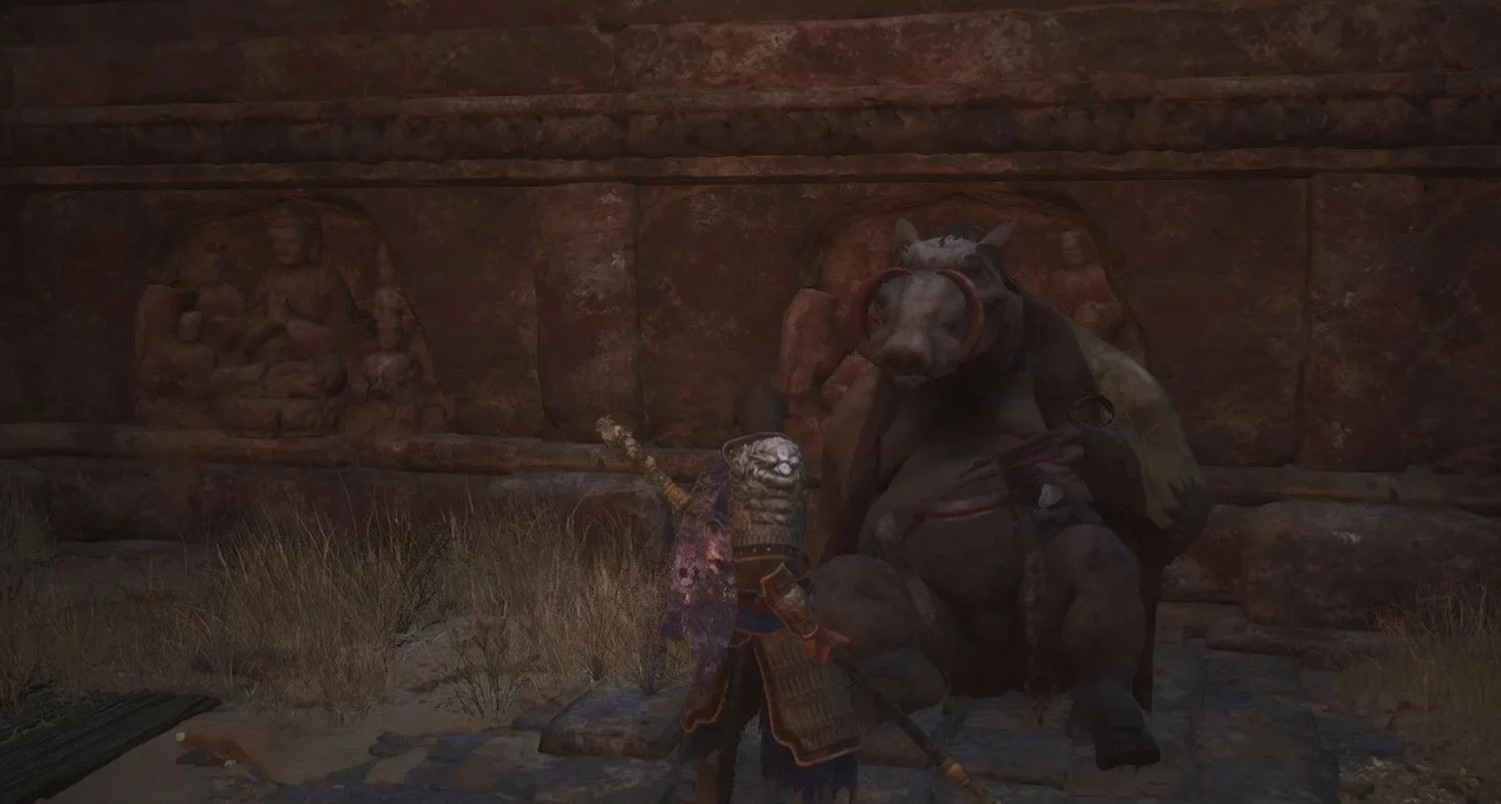 Чтобы его увидеть, вам нужно будет пройти через разлом вдалеке, который откроет вам вид на огромного, развалившегося под палящими лучами солнца кабана, похожего на человека.