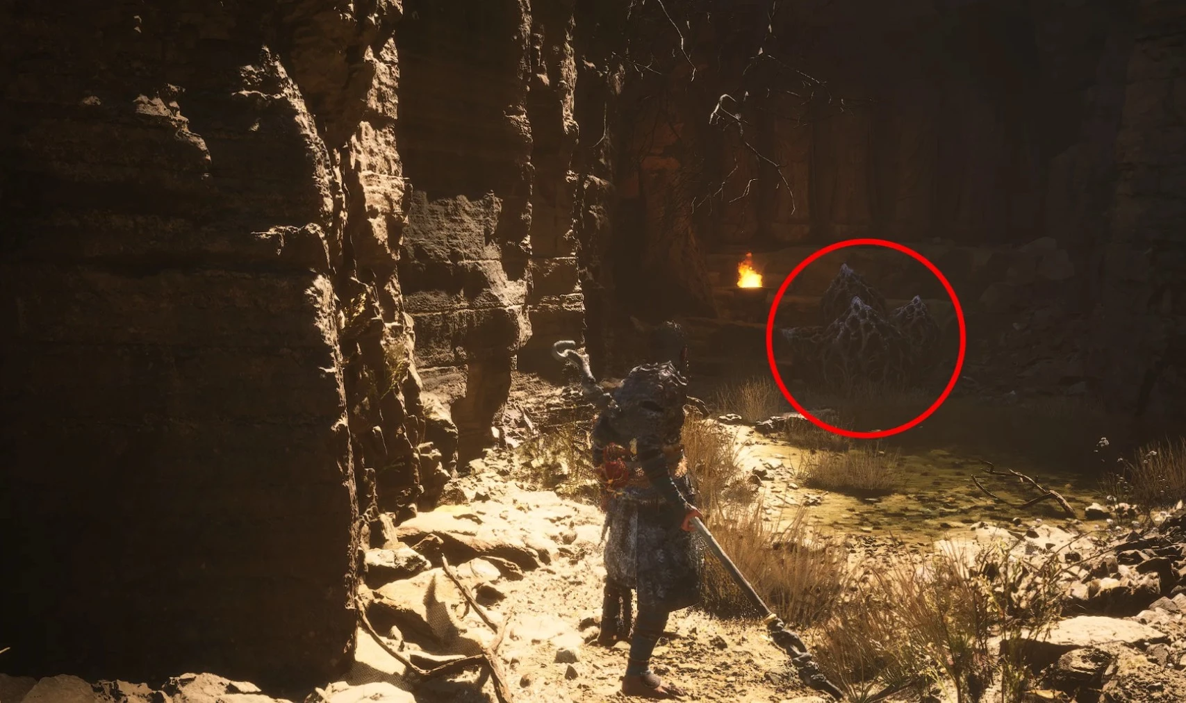 Для этого направляйтесь к алтарю Пристанище ветров на Скале страха и следуйте по тропинке справа, пока не наткнетесь на небольшое ущелье.