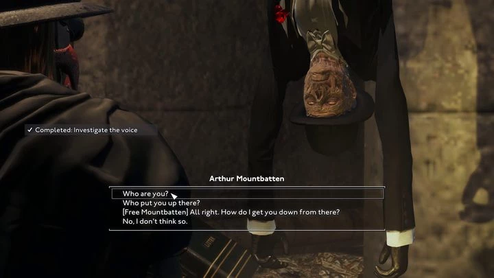 Чтобы помочь Артуру, вам нужно сначала поговорить с гулем, который не захочет общаться, пока вы его не освободите. Для этого выберите опцию диалога «[Освободить Маунтбеттена]». После освобождения Артур упадет, но вскоре восстановится, что даст возможность продолжить разговор.