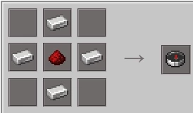 Чтобы изготовить стандартный компас, потребуется четыре железных слитка и редстоун. Расположите эти материалы на верстаке в соответствии с рецептом.