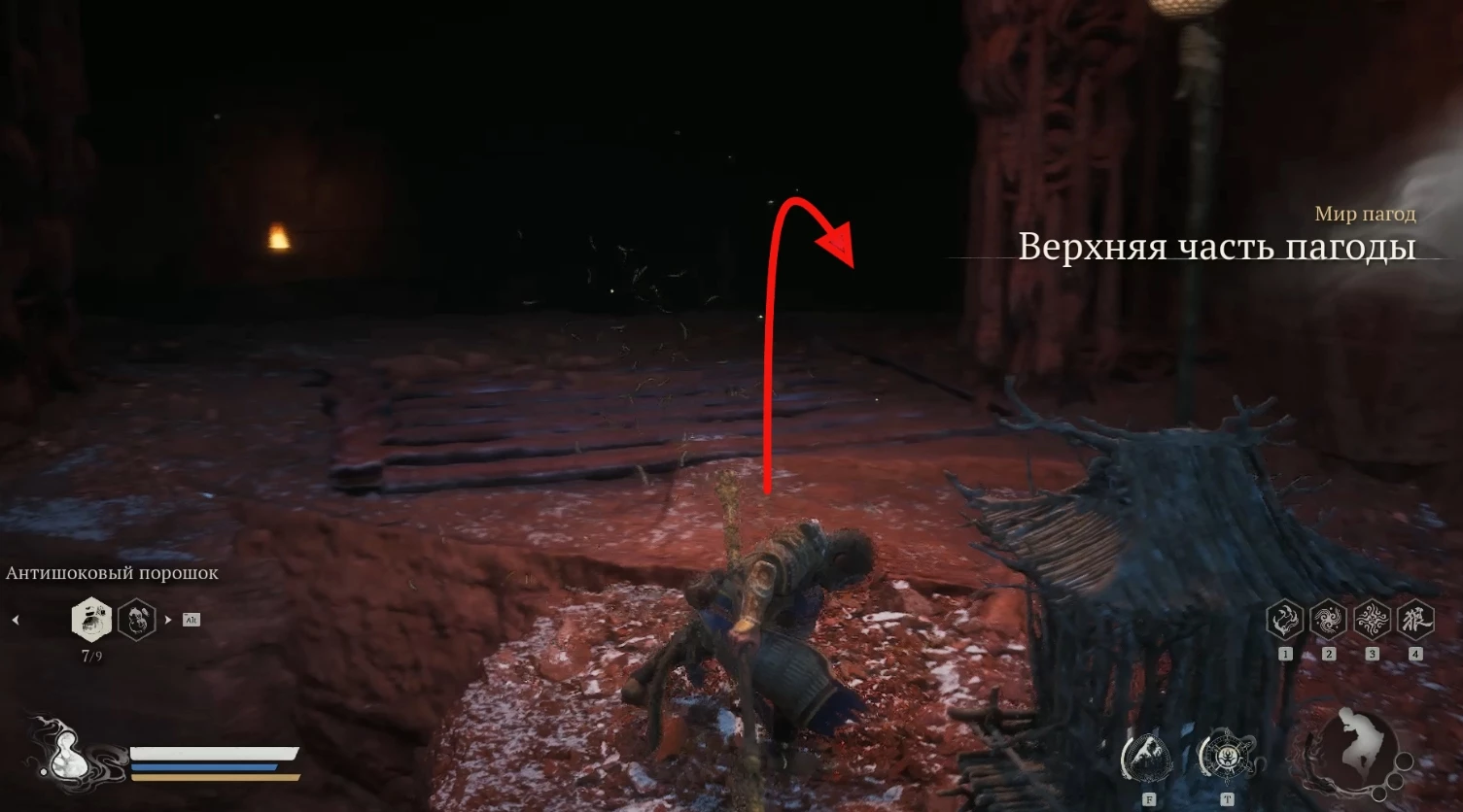 Кроме того, следует помнить, что Мир пагод переполнен сильными противниками и опасными обрывами. Здесь действует проклятие, которое постепенно уменьшает ваше здоровье до половины, одновременно увеличивая вашу атаку.