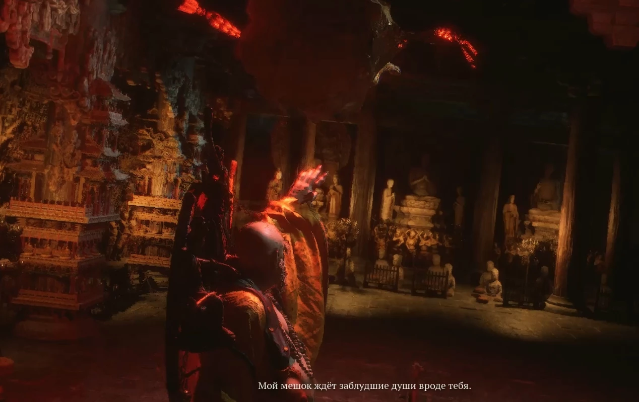 Воспользовавшись любимым приемом боссов из видеоигр, он, лишившись здоровья, неожиданно одержит над вами победу в кат-сцене, после чего вежливо пригласит стать ещё одним узником его волшебного мешка. Внутри вы встретите Чжу Бацзе и Вождя обезьян.