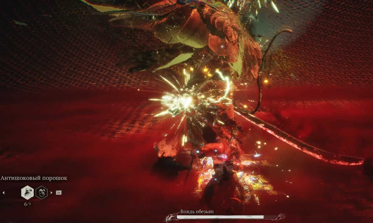 В некотором смысле это даже отрадно, поскольку вы получите шанс расправиться с еще одним раздражающим врагом, причем в компании боевого товарища. Но не позволяйте себя обмануть! Скоро Чжу Бацзе отвлечется на других противников; потому действуйте быстро: примените обездвиживание и старайтесь нанести Вождю обезьян максимальный урон, пока ваш напарник все еще в строю.