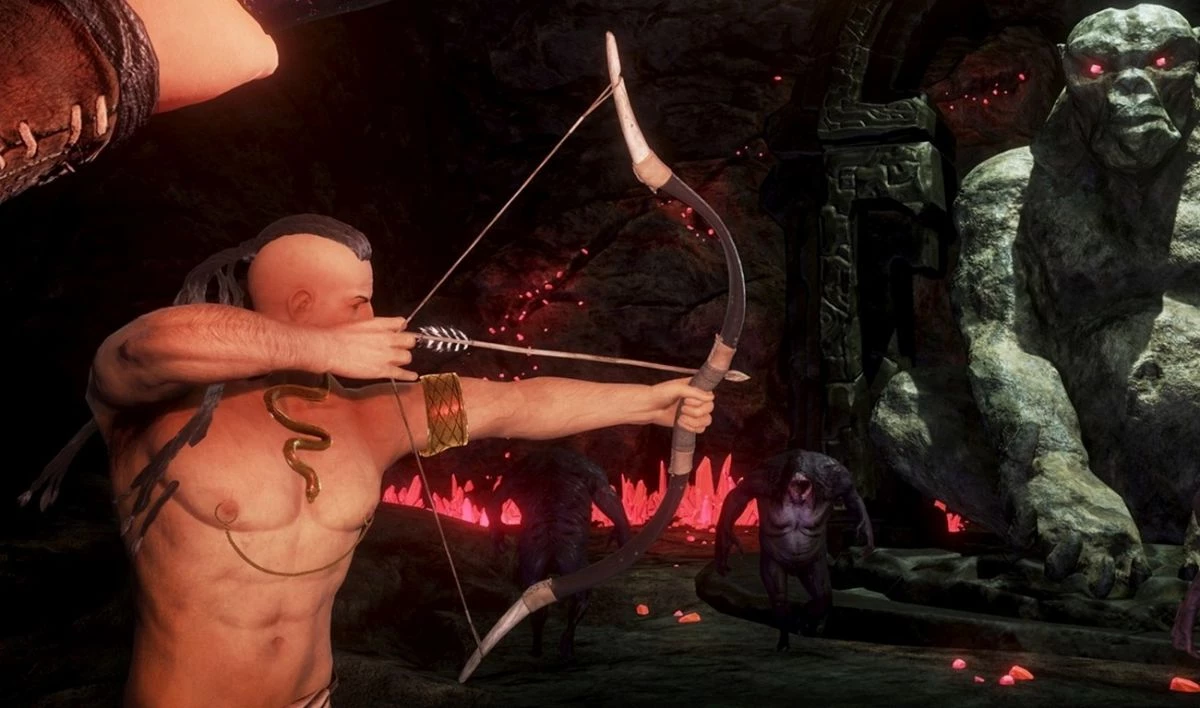 В отмеченных зонах, именные лучники встречались мне гораздо чащеЛучники обитающие в Вулкане, имеют немного больше здоровья, в сравнении с Охотниками за Реликвиями, но по непонятным причинам совсем не прокачаны в Меткость. Зато вооружены они - Луком из Кости Дракона.