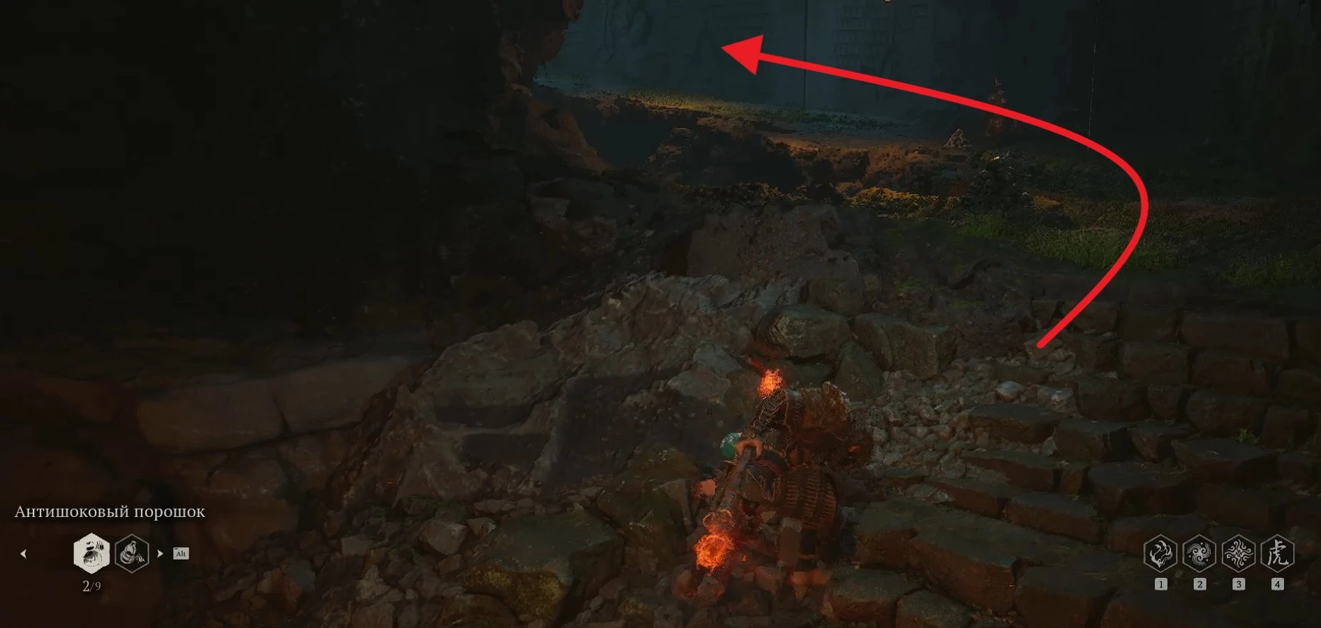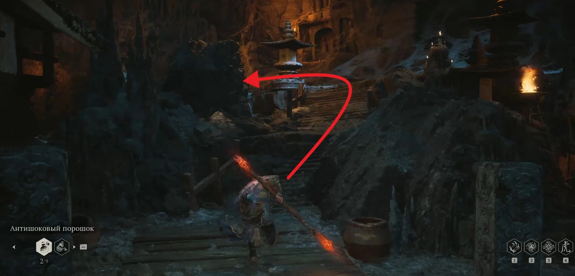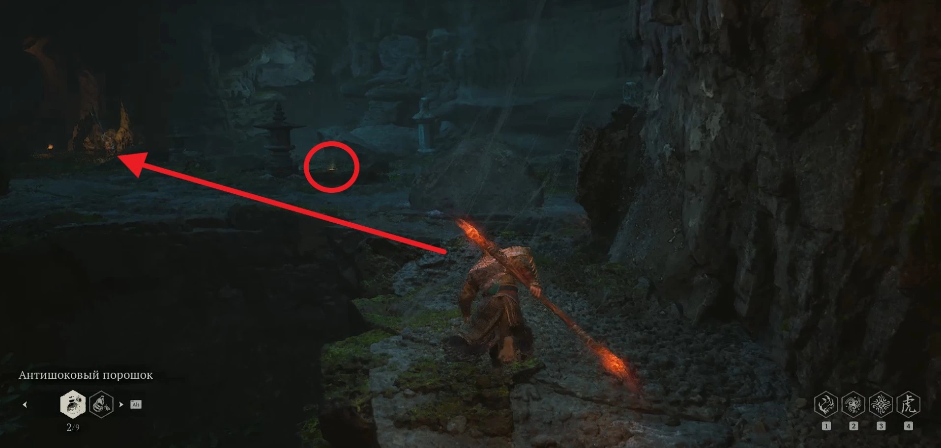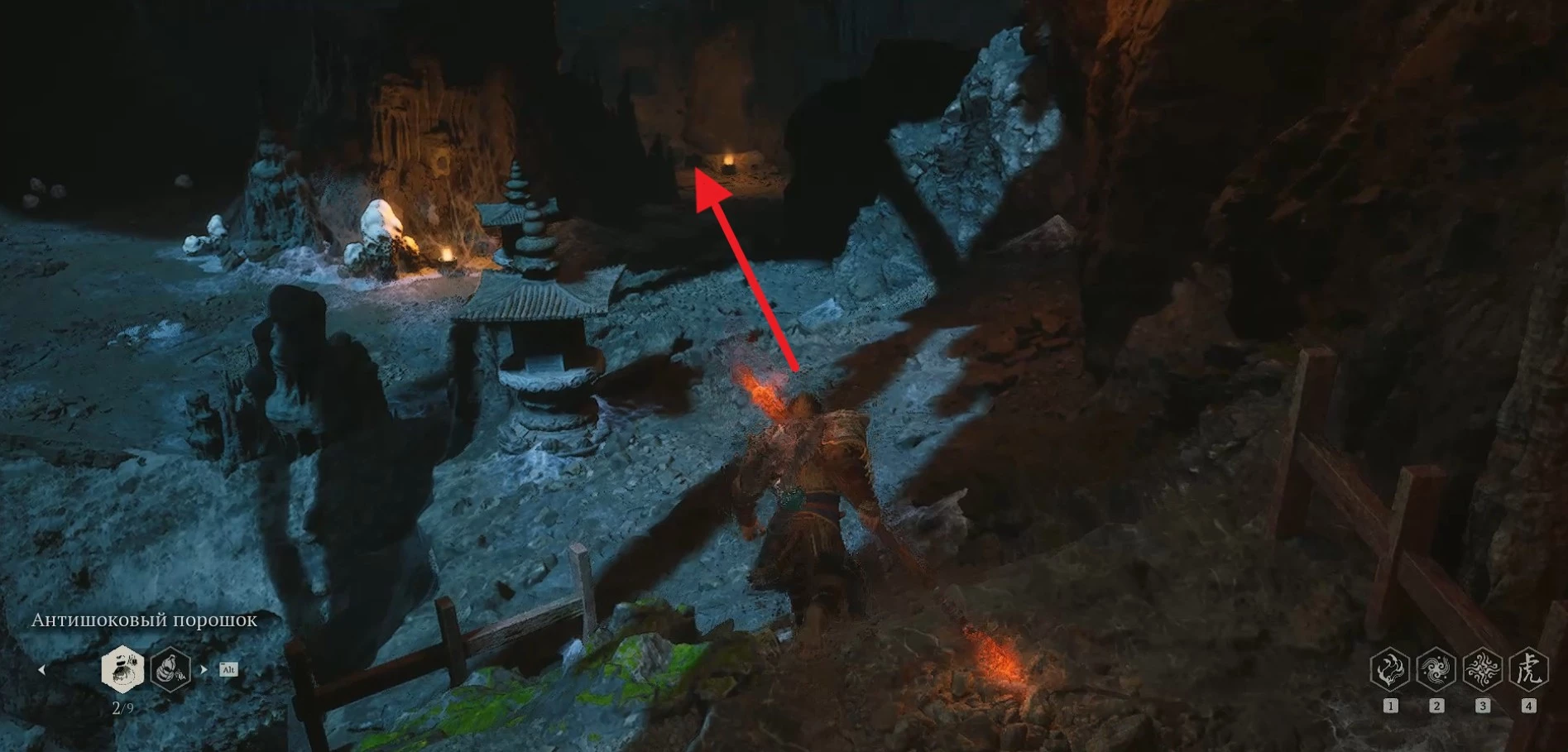 В этом месте вы натолкнетесь на пещеру, где и пройдет финальная схватка с Даосом-отравителем.
