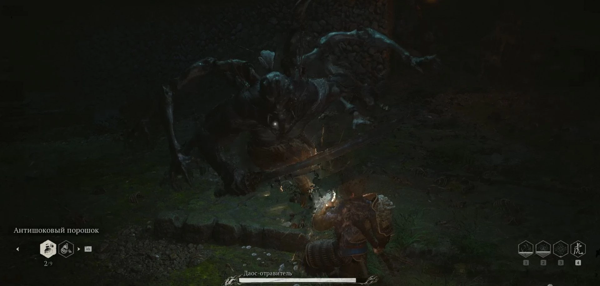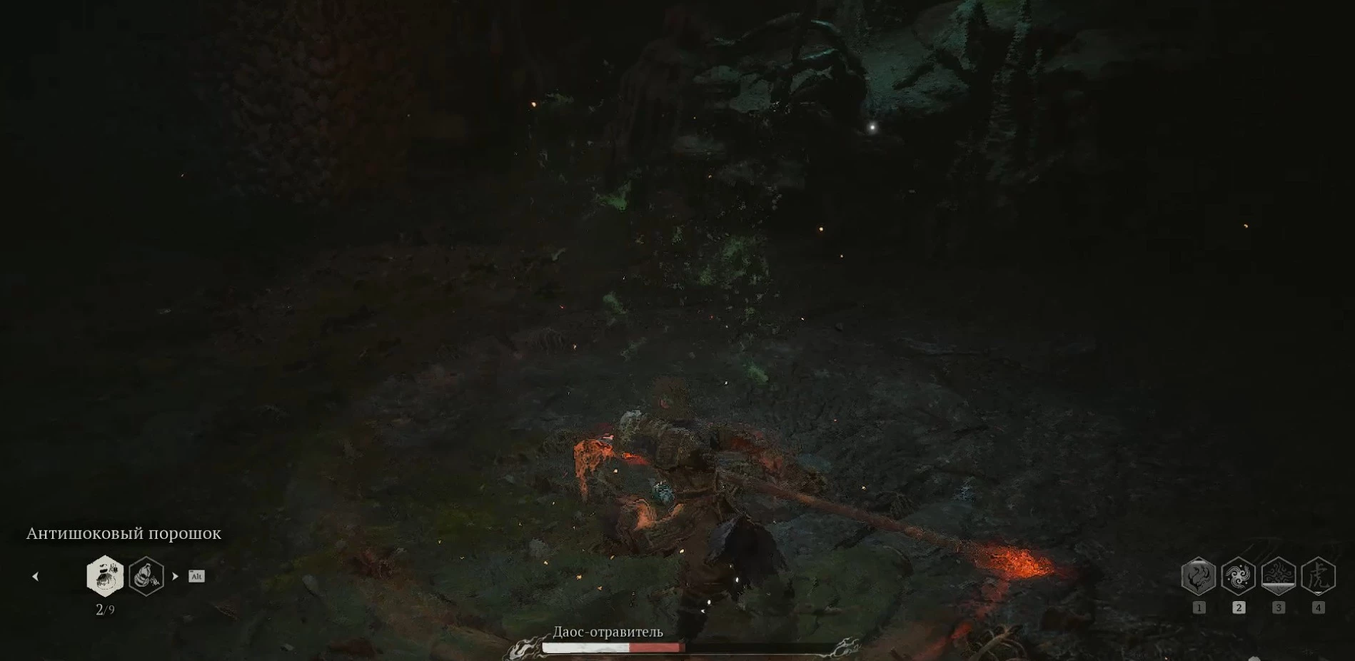 Несмотря на то что его рывки станут более стремительными, а каждый удар будет отнимать около 20% вашего здоровья, вы все еще сможете оглушить Даоса-отравителя с помощью заряженной атаки. Если же далее обездвижить его, то после нескольких сильных ударов босс уже не сможет подняться.