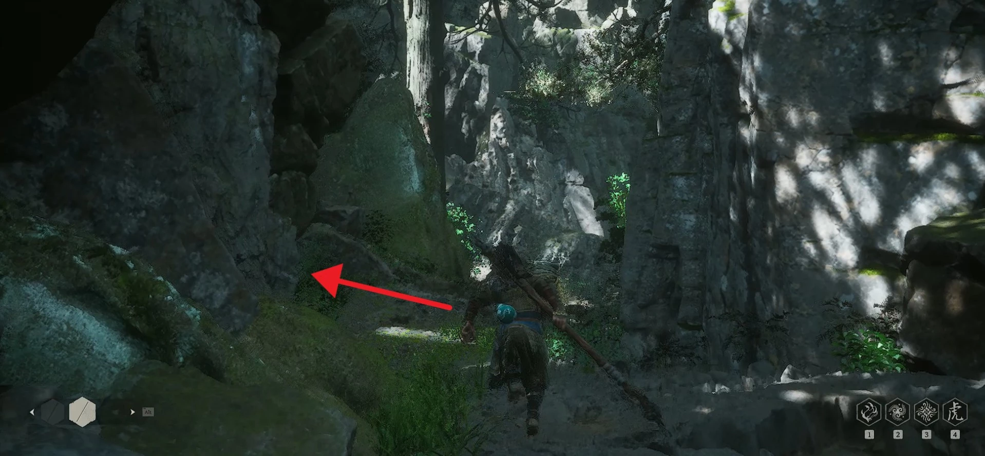После активации алтаря Нефритового озера двигайтесь через следующую пещеру с коконами, которая находится справа, пока не достигнете открытой площадки с более крупным коконом.