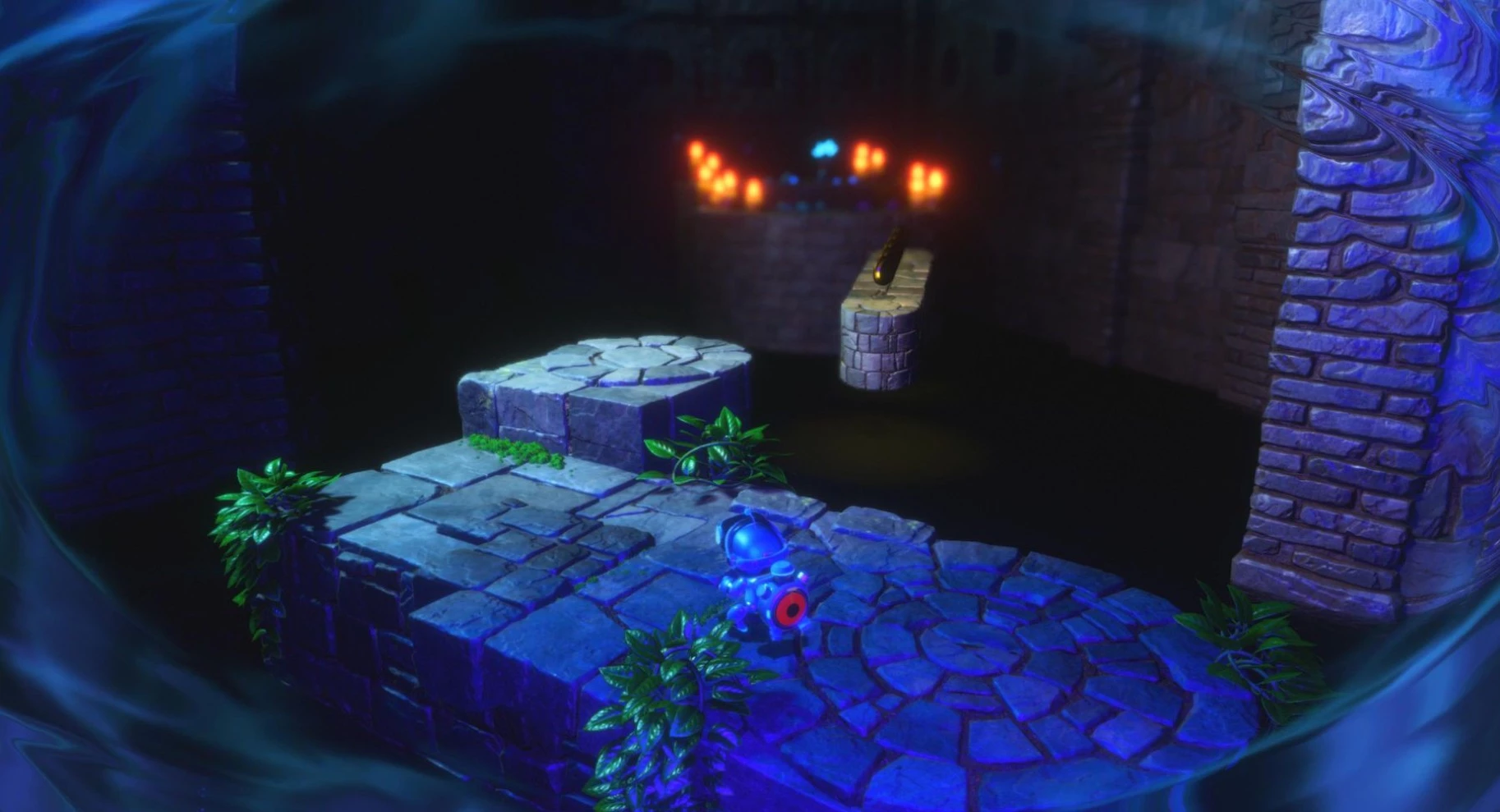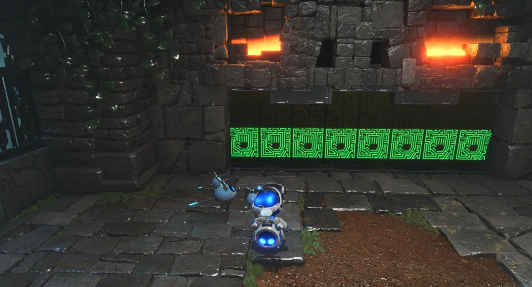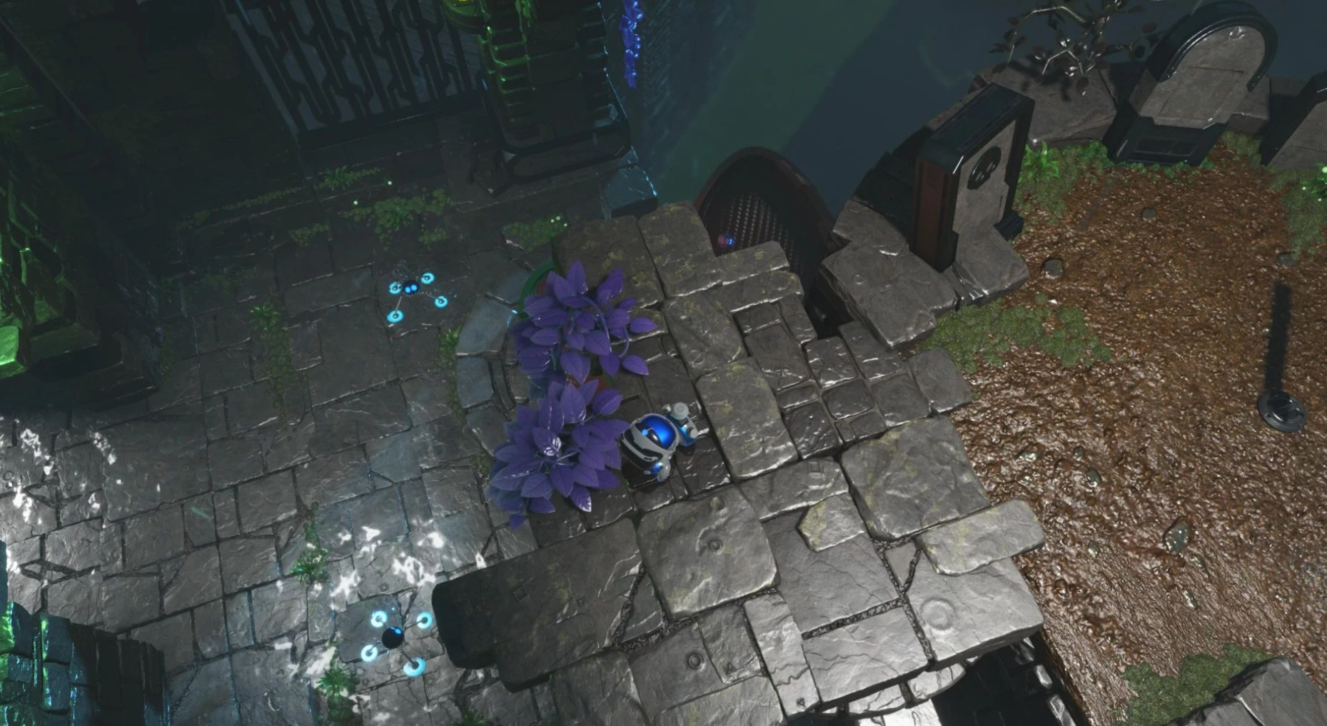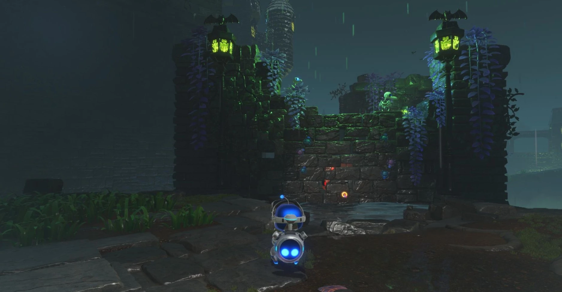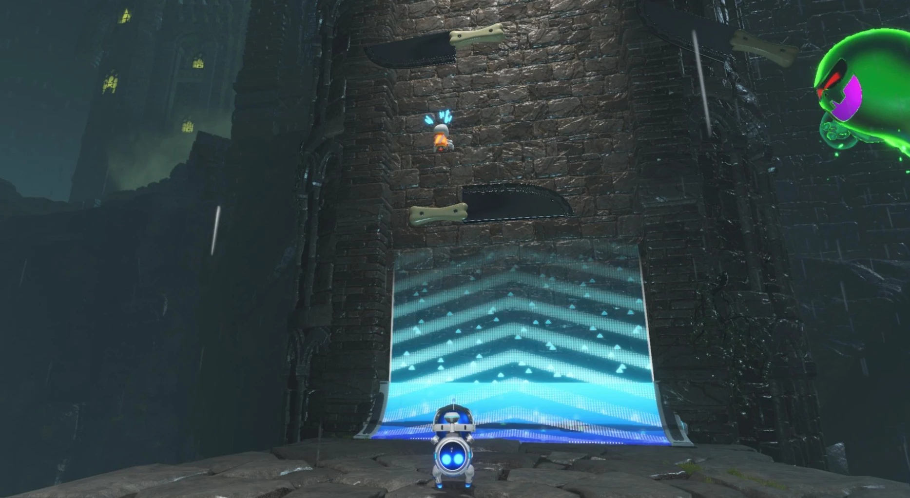 После преодоления этого препятствия взгляните налево. Идите к свечам, охраняемым электрическим существом, за которыми находится третий бот.