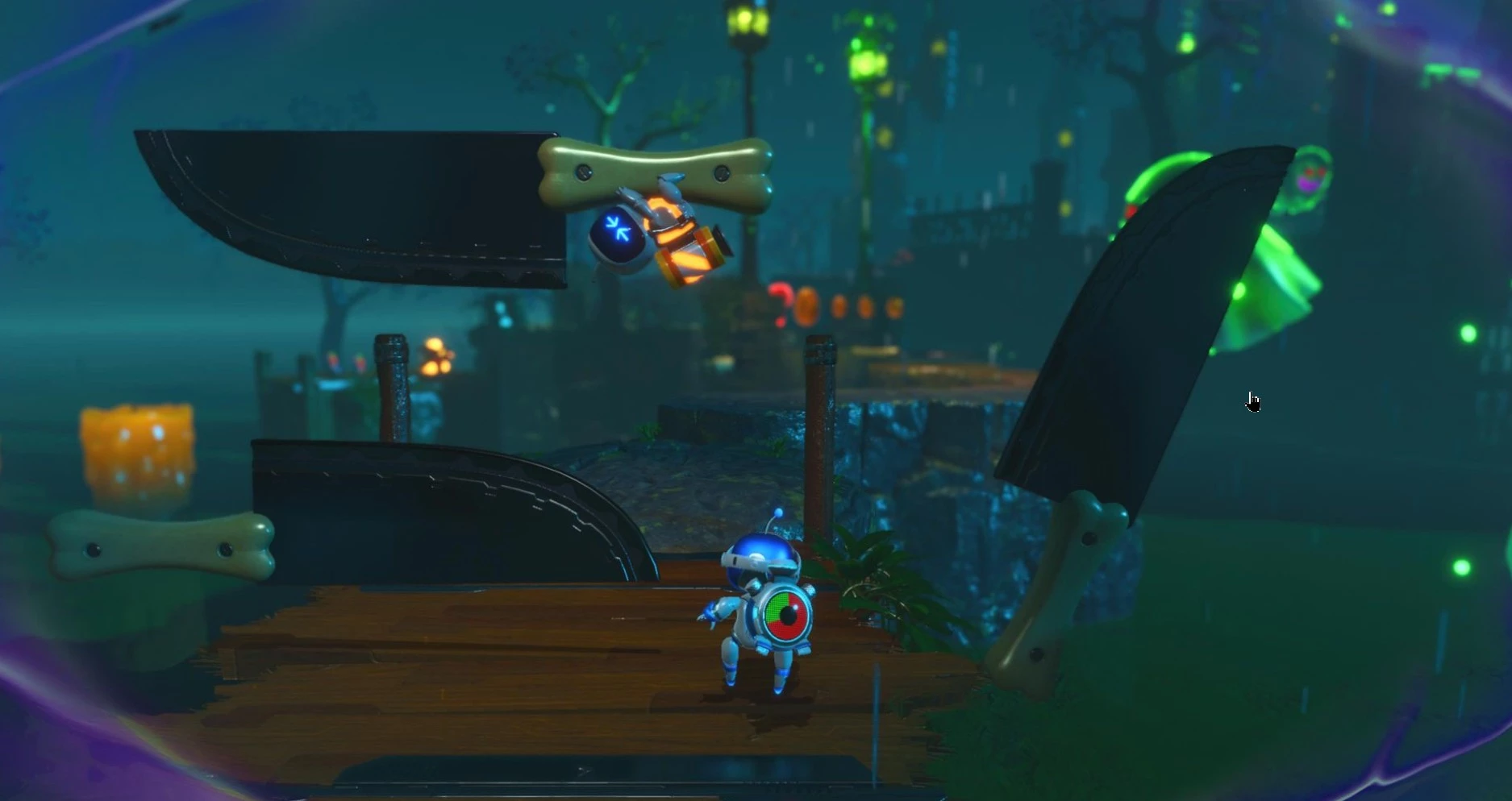 На уровне «Жуткое время» в Astro Bot вам снова предстоит использовать способность замедления времени. Она поможет вам найти спрятанных ботов и части головоломки в этой локации. Далее приведем указания по их поиску.