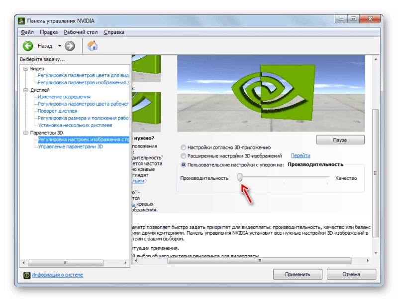 Вторым шагом будет вход на вкладку, которая определяет, на чем должны фокусироваться система и драйверы вашей карты здесь как правило, по умолчанию использует качество, поэтому все что вам нужно сделать, это переместить ползунок к максимальной производительности. Мы определенно не рекомендуем внешние программы оптимизации, потому что они обычно представляют собой вредоносные приложения, полные вредоносных программ.