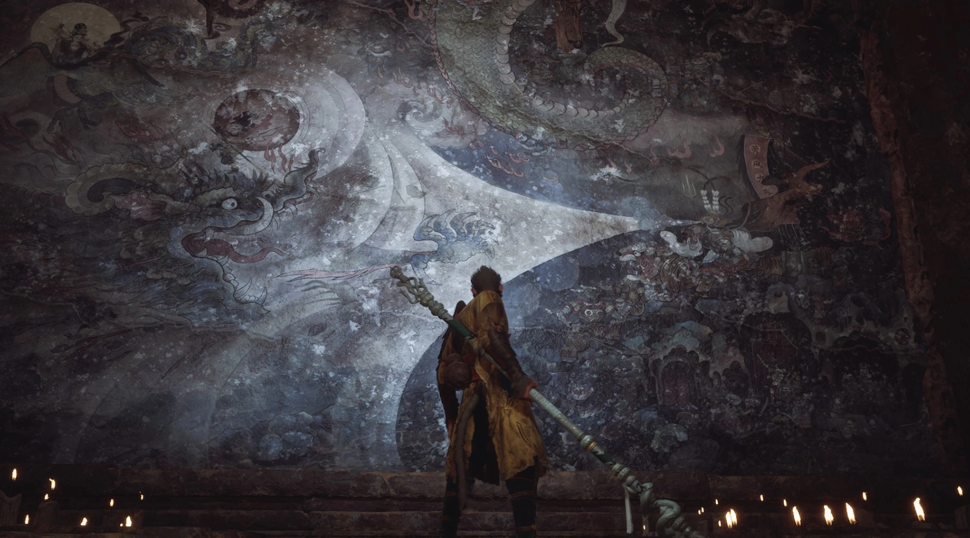Ваш взор останавливается на удаленной стене, разделенной на пять секторов. Если четыре из них сверкают роскошными картинами, значит, все необходимые шаги сделаны, и вам остается лишь подняться по центральной лестнице, чтобы заполнить последний пробел и разгадать уснувшую тайну Великой пагоды. В противном случае, если хотя бы две стены или все они представляют собой однородное красное полотно, значит, вы пришли сюда слишком рано или не обнаружили загадочные укрытия в мире Black Myth: Wukong.