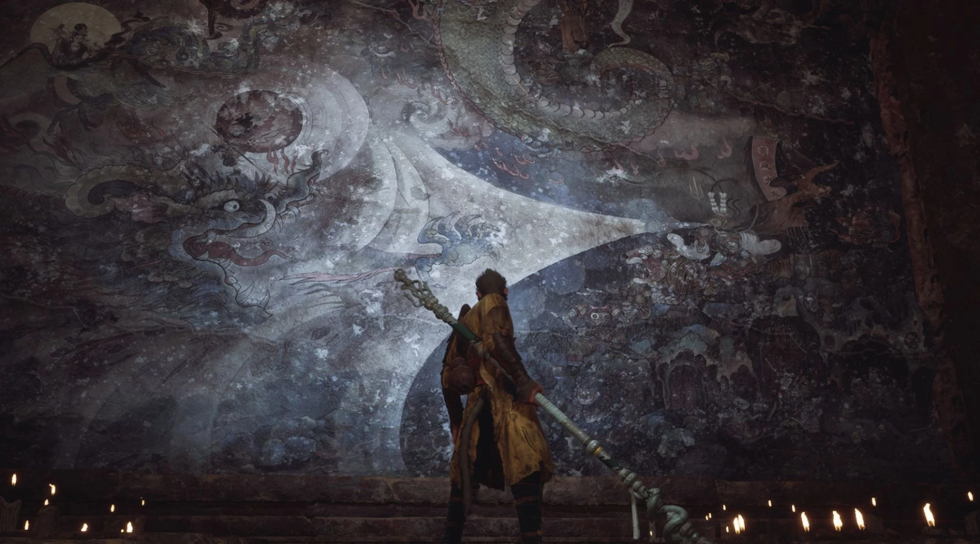 На стенах вы сможете увидеть все скрытые локации, которые вы нашли в первых пяти главах Black Myth: Wukong (за исключением третьей). Это не только даст вам возможность узнать о ключевых аспектах сюжета и мотивациях некоторых персонажей, но также наградит вас ценным артефактом, необходимым для финальной битвы главы. Если исследуете все пять скрытых мест, то откроется доступ к последней локации, за прохождение которой предусмотрена специальная награда.