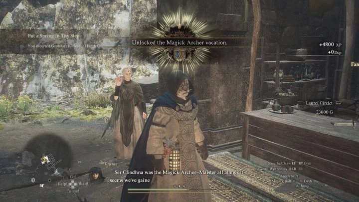 Клиодна, как благодарность своему возлюбленному, предлагает вам щедрое вознаграждение в 23 000 G и уникальный предмет — Лавровый венец. Однако, важнее всего, она раскрывает свою истинную личность как Магический Лучник и предоставляет вам возможность изменить ваше призвание на этот класс. В качестве мастера, она также предлагает свиток Парадокса Заклинательного Лука, который при выборе и использовании в роли Магического Лучника открывает доступ к новому навыку — Снаряд Мученика. Этот мощный снаряд имеет уникальную особенность: он отнимает часть здоровья пользователя. Таким образом, вместе с изменением призвания вы сможете настраивать классовые навыки в здании Гильдии, что расширяет ваши возможности в игре и придаёт вашему персонажу новые способности.