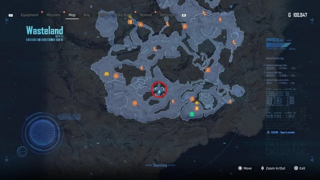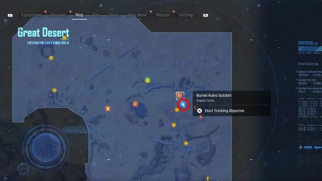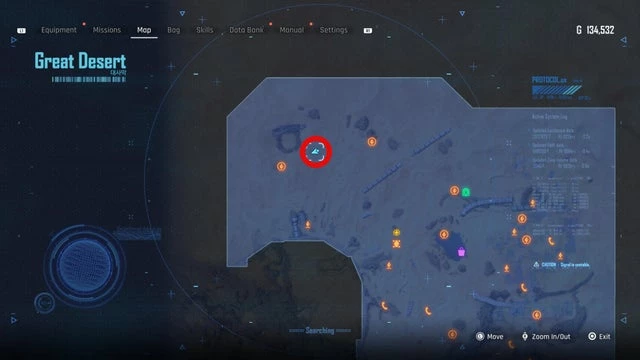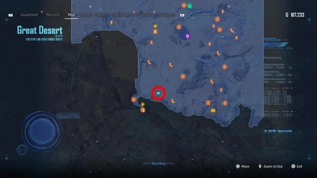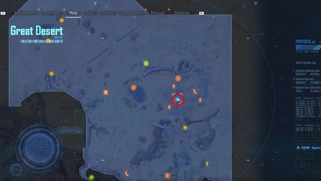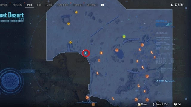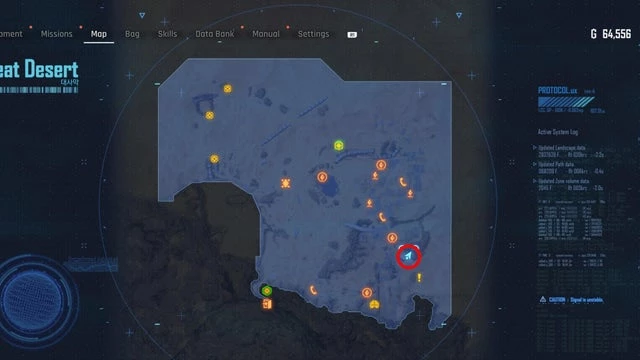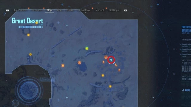 Находится в районе Оазиса в Великой пустыне, как указано на скриншоте ниже. Добравшись до места, вы встретите строительный знак перед патрулирующим монстром. В середине маршрута, охраняемого этим существом, установите лёгкую мину. Когда монстр всколыхнёт землю и детонирует мину, появится ящик с банкой.