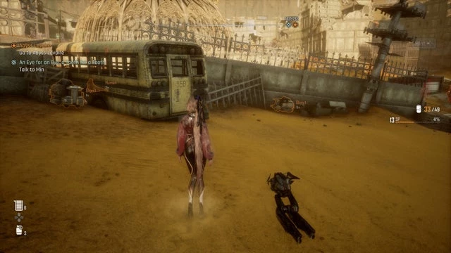 Эта находка скрыта в Великой пустыне, на востоке, близ лагеря легиона «Тропа посреди руин», недалеко от оперного театра. Чтобы отыскать заветную банку, начните с места, изображенного на скриншоте ниже. Достигнув цели, вы столкнетесь с разваливающимся домом, рядом с запечатанными воротами слева. Используйте строительные леса, чтобы проникнуть в его разрушенные внутренности. Пролезьте в щель правой стены, и перед вами откроется комната с передвижным ящиком и грунтовой тропой, обвивающей обломки в центре. Схватите ящик и двигайтесь по дорожке, уничтожая появляющихся врагов. Тропа ведет к дыре в стене, а желтая краска под ней намекает на возможность пролезть. Запрыгните на ящик и перепрыгните через стену. Вы окажетесь во дворе, полном чудовищ. Уничтожив врагов, найдите ящик у ворот, который вы видели ранее. В нем сокрыта банка с «Жидкой радиацией».