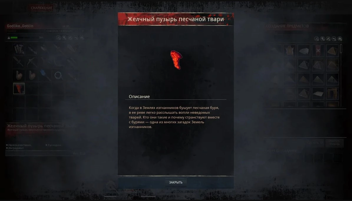Песчаные ТвариКаждая песчаная тварь даст ровно один желчный пузырь, даже если у вас прокачана черта Трудяга, в ветке Выживания.
