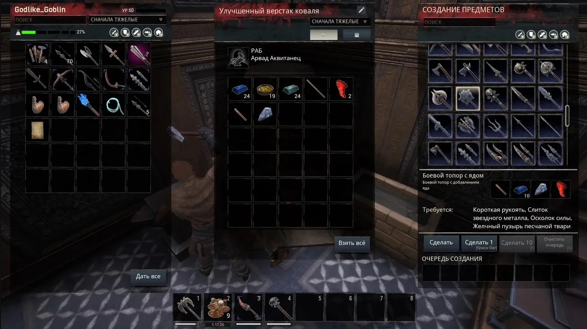 После того, как свиток с необходимым рецептом будет у вас в руках и вы внимательно его изучите, выяснится, что для производства оружия с ядом, потребуются 20 слитков Звездного Метала, Осколок Силы и Желчный Пузырь Песчаной Твари.