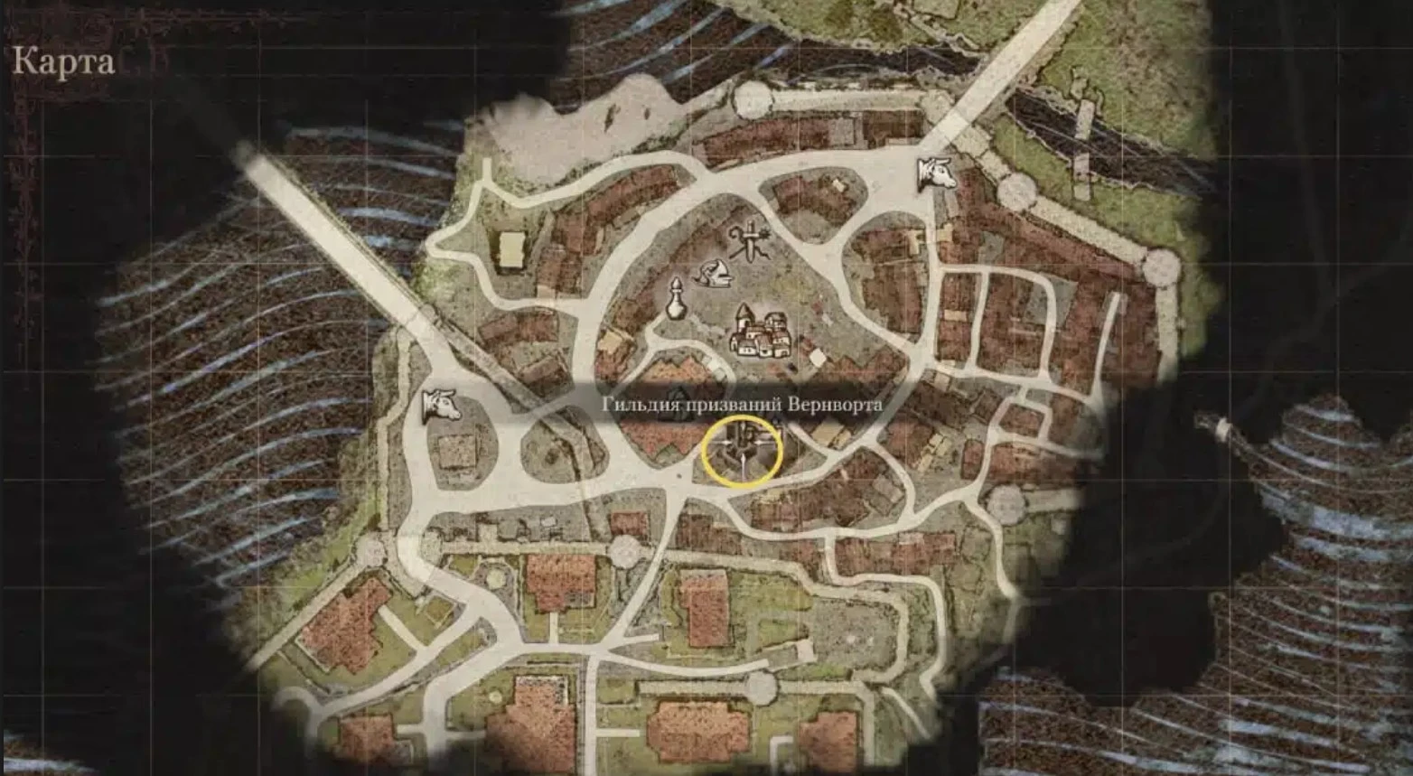 Так же, как и в Вернворте, филиал гильдии призваний вы найдете в Пограничном городе на западе, куда вам неизбежно предстоит отправиться.