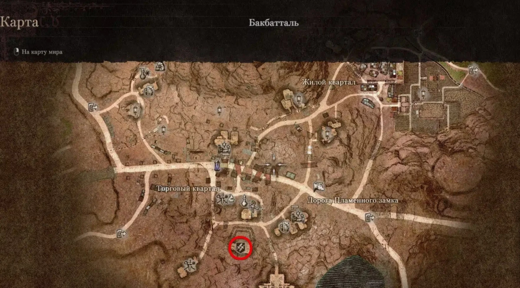Она расположена на юге Бакбатталя, рядом с усыпальницей.
